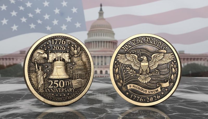 Celebrate America’s 250th Anniversary with this striking US Capitol Brass Coin, a patriotic challenge coin perfect for Independence Day, memorials, or everyday carry (EDC). Crafted from solid brass, this engraved souvenir commemorates the United States’ semiquincentennial (1776–2026) with intricate detail and meaningful symbolism.