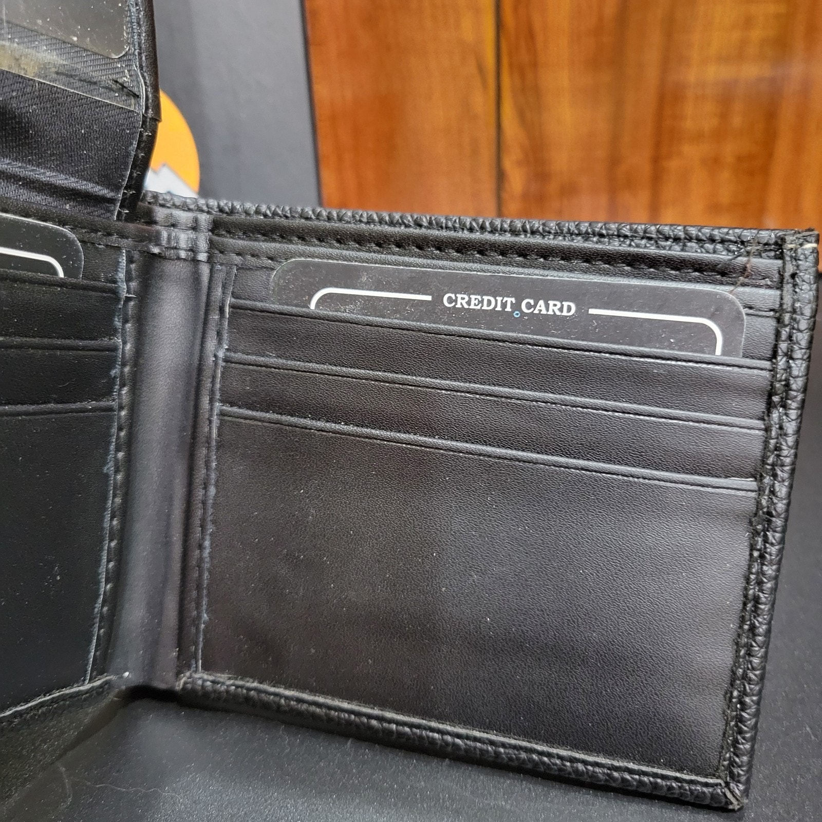 Beautiful wallet with a striking combination of black and tan. The material is bubble design faux leather. The wallet is accented by virgen de Guadalupe concho.