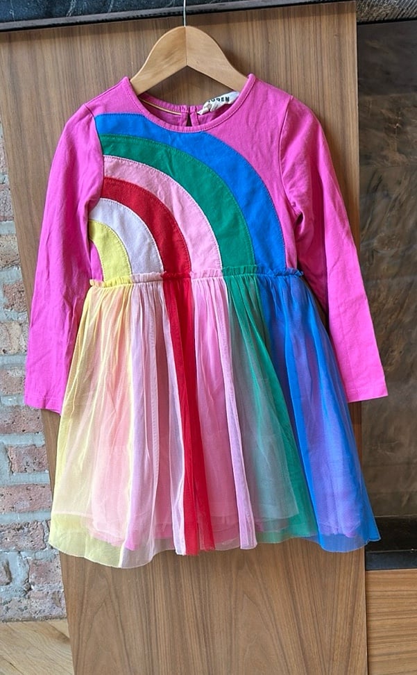 Super fun Boden tulle dress with a vibrant rainbow design. Tulle is in great condition. No noticeable snags. Gently used so light wash wear. No stains.