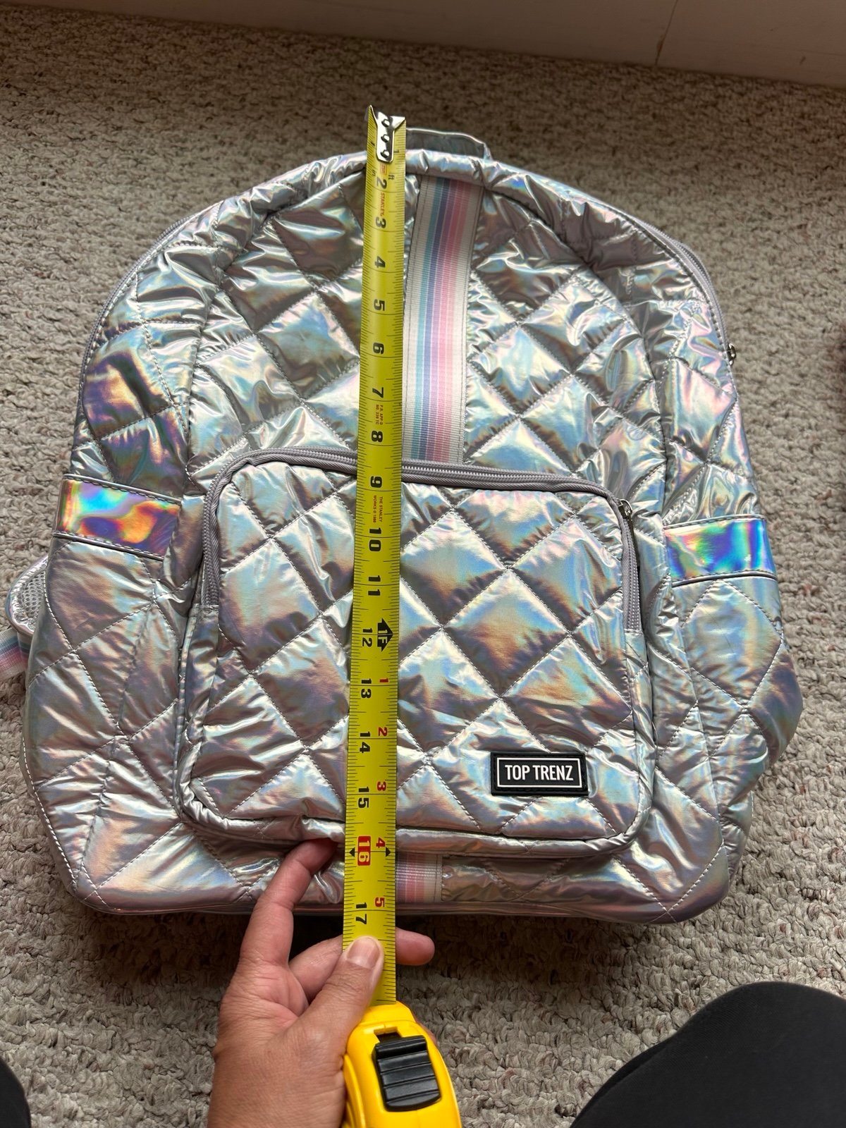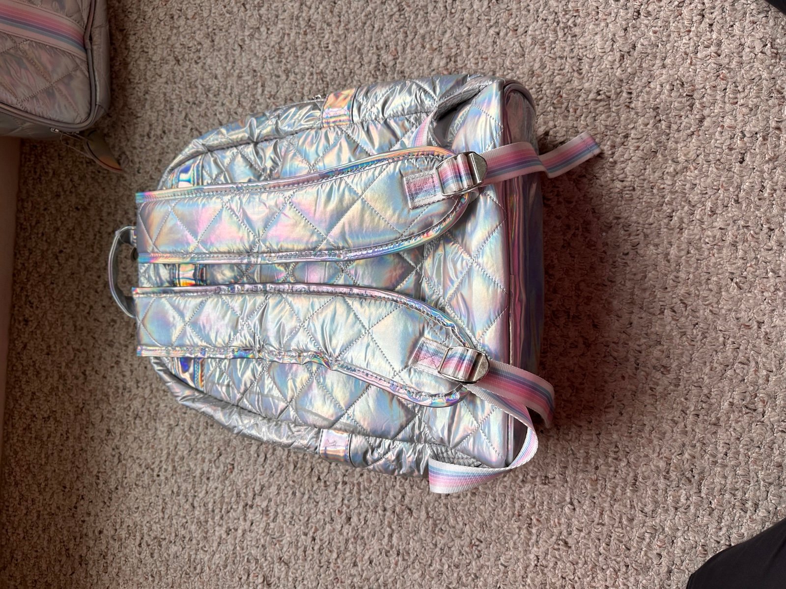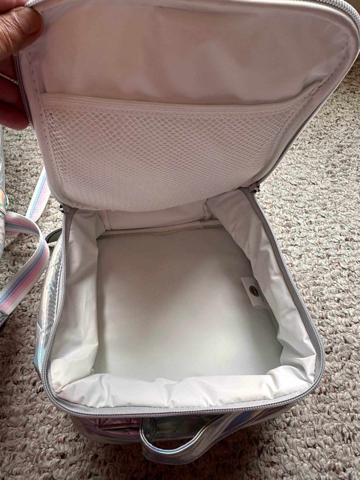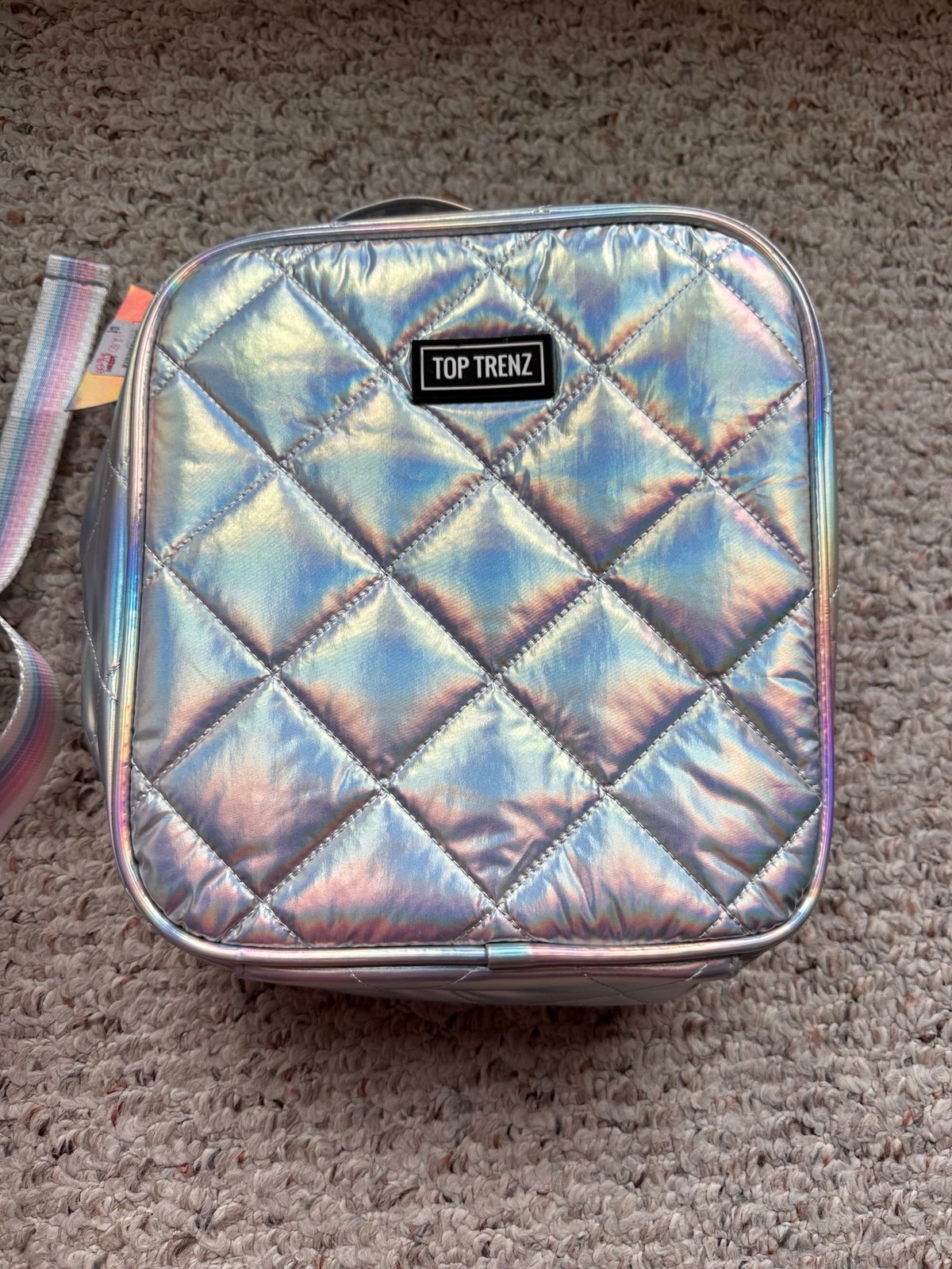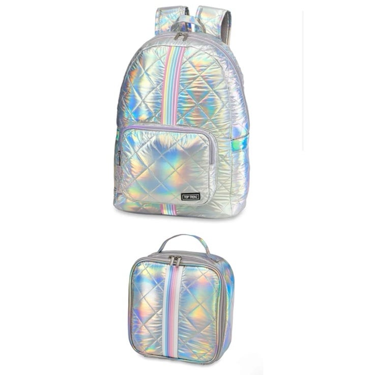 Head back to school in style with this fun diamond stitch puffer backpack and matching lunch bag! Backpack comes with 2 zipper compartments and two slip pockets on each side. Great for all ages. Measures 13Wx18Hx5.5"D. The lunch bag features one large zippered compartment with a mesh slip pocket inside. The lunch bag measures 8x9x4 and the inside is an easy wipe clean material.