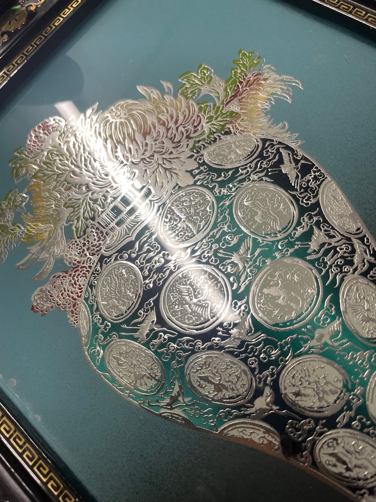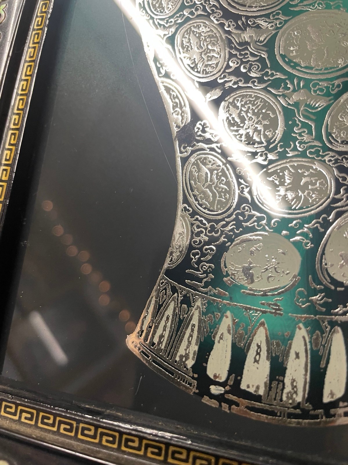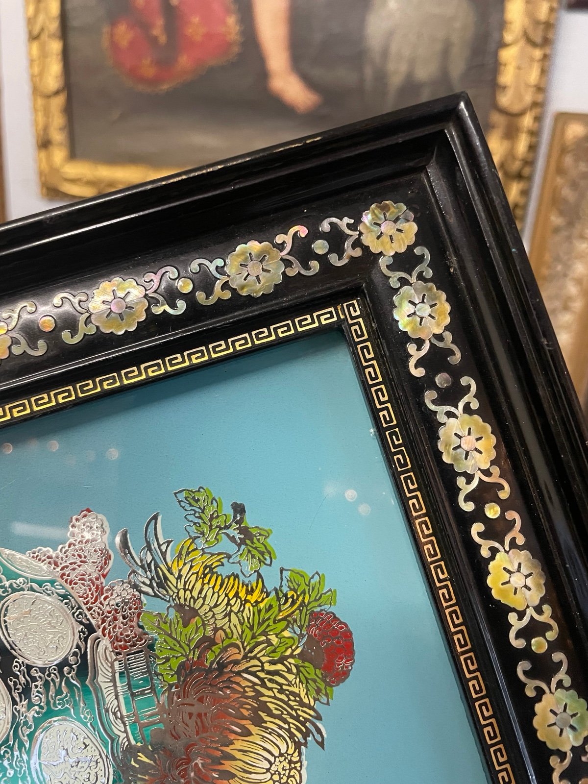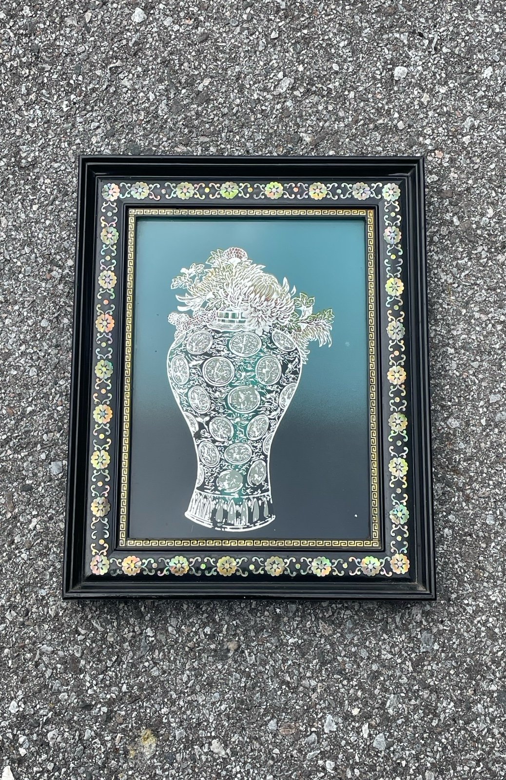 - Decorative Frame with mother of pearl floral elements and Greek key pattern boarders