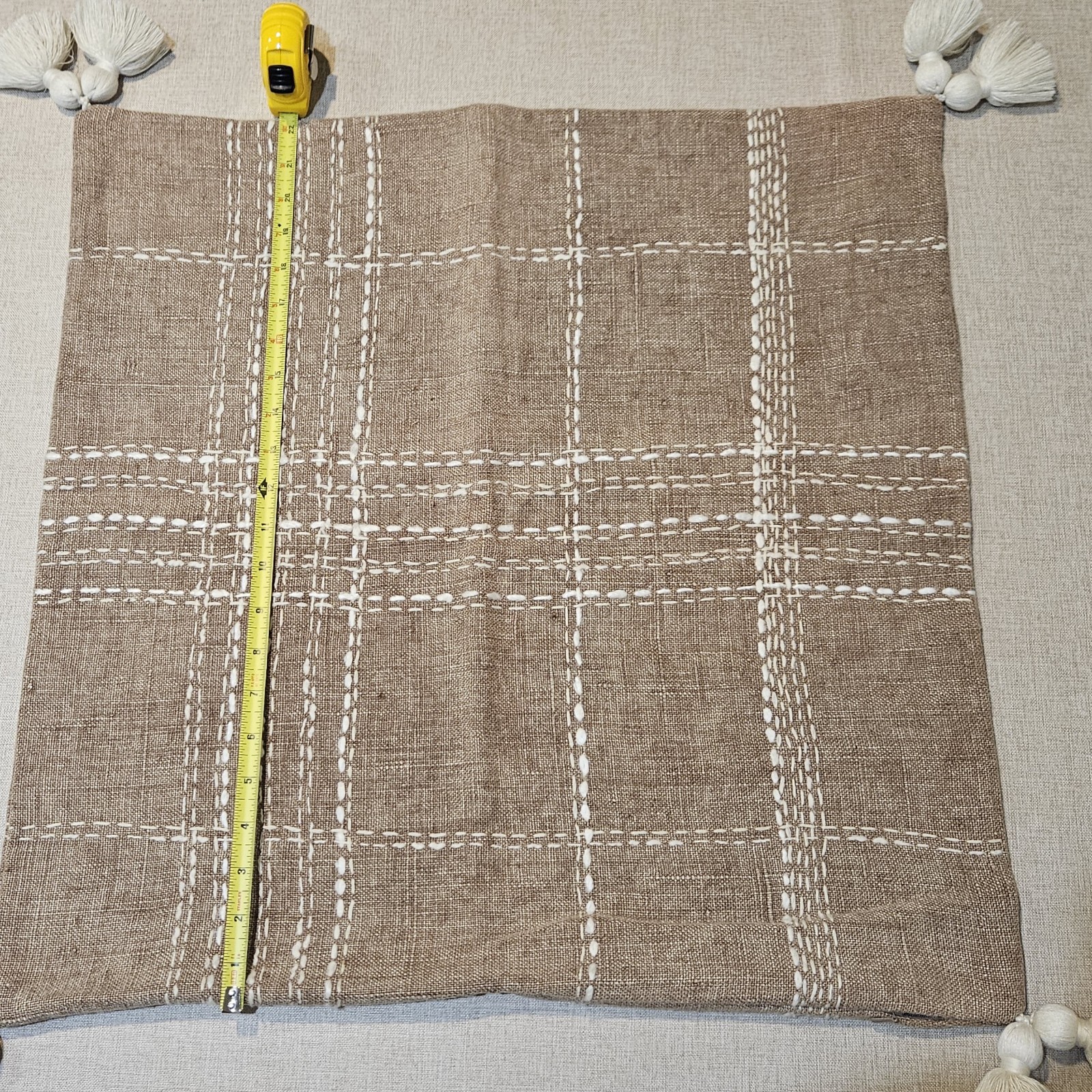 ☆Our relaxed version of a classic plaid gets its textural mix from embroidered stitching on a backdrop of our favorite washed linen. Hand-dyed, it has unique variations in color, offering rich character and beauty. Twin tassels at each corner add a punch of playful interest.