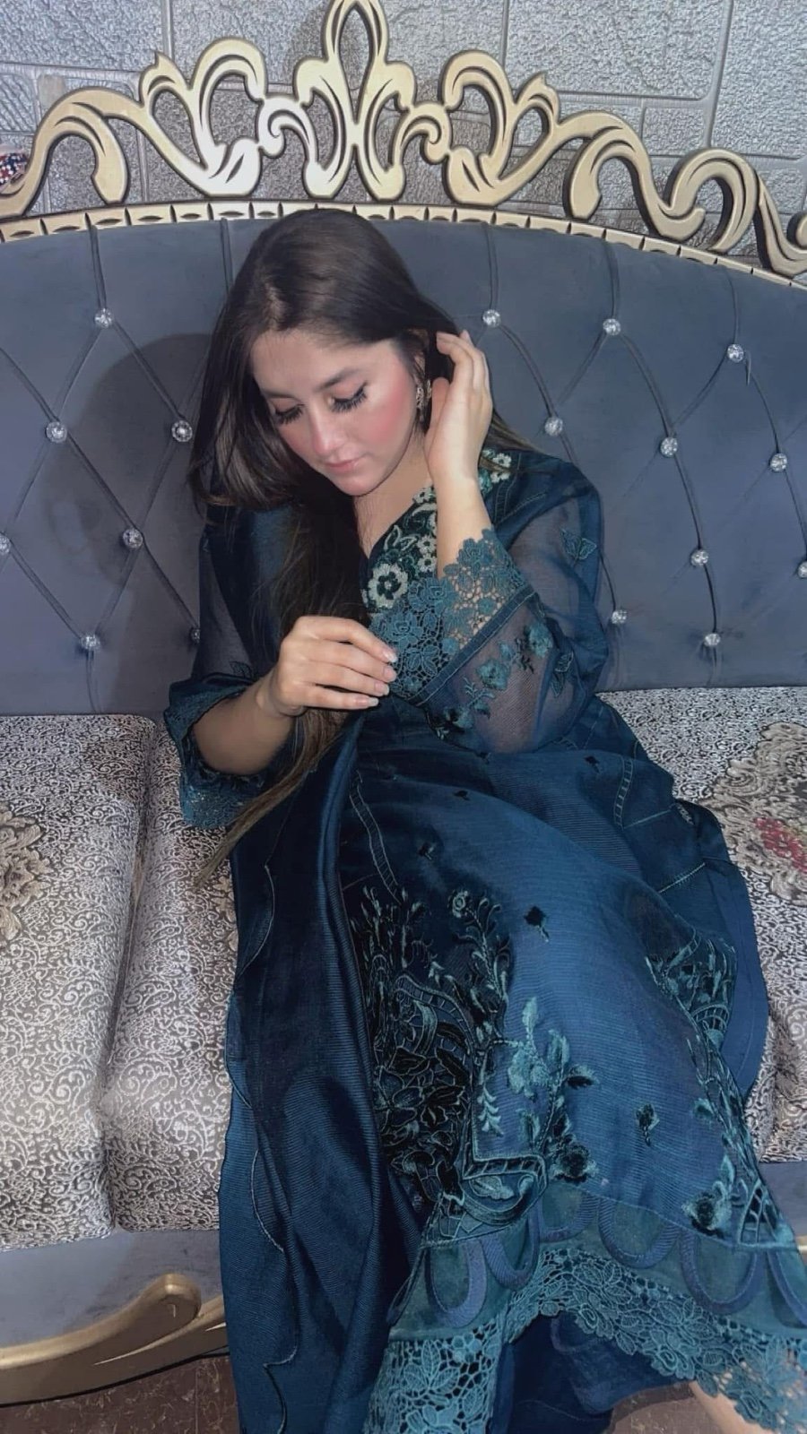 Emerald green beautiful dress with organza dupatta and handwork best for any special occasion fully embroidered front with handwork patch