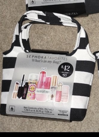 What's in my bag? This is the Kohl's edition, they have 8 items each!! Not on the Kohl's site at this time it sold out. Brand new and purchased directly from Kohl's i have 4 of them so if you are interested in a bundle I can make a new post.