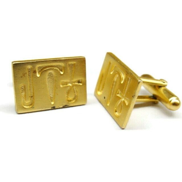 Unbranded's Gold Plated 925 Sterling Silver Egyptian Ankh Cartouche Cuff Link Cufflinks in Yellow Gold are a bold, stylish accessory for any formal occasion. Made from an unidentified material for a unique touch.
