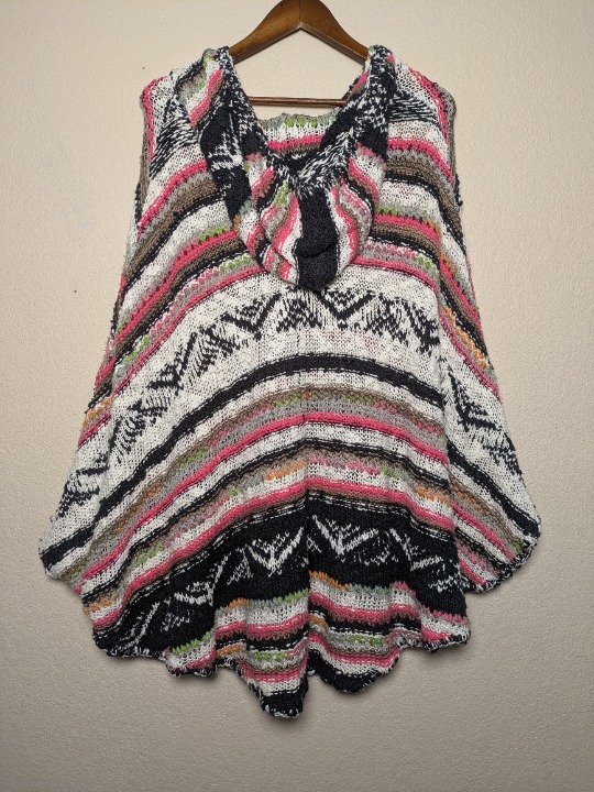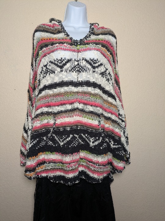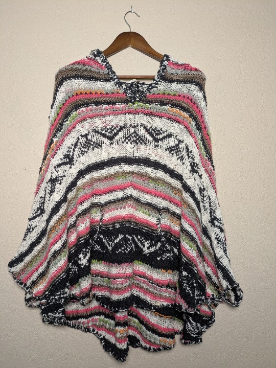 Rare and sought-after Free People Bubble Tea Yarn Poncho in a dreamy handwoven bubble yarn texture. Features vibrant stripes of pink, black, white, and earthy tones, with an oversized drapey fit, front pocket, and cozy hood. Perfect for layering at festivals, concerts, or cozy cottagecore days. Great pre-owned condition. Please see all pictures for details and send an offer or request a bundle to save! Into this kind of energy? Tap my profile for similar finds — bundle up and save while you're at it!