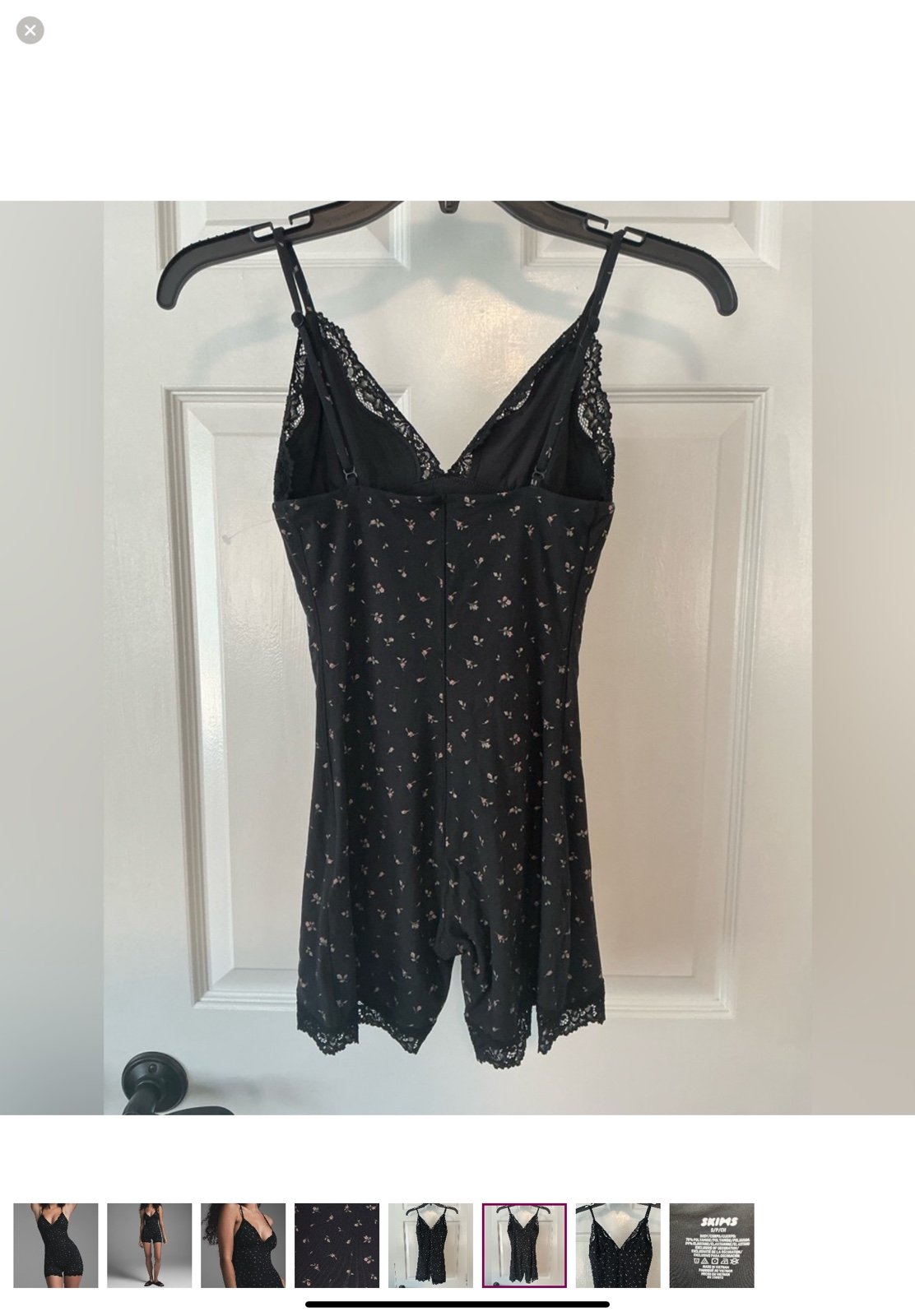 SKIMS Fits Everybody Lace Triangle Onesie. Don’t think twice-you need this onesie. With incredible stretch and sexy lace details, this onesie flatters every body with our buttery Fits Everybody Lace fabric. A miniature bow detail adds a romantic touch to this playsuit that has adjustable elastic back straps and a lined gusset.