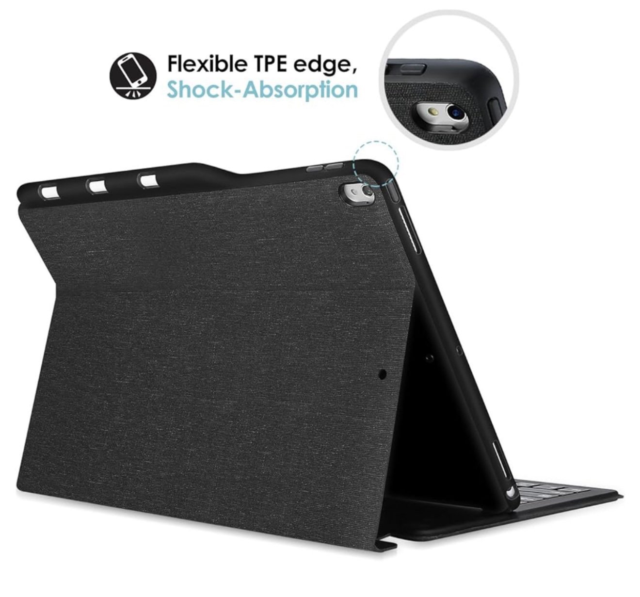 Premium composition leather exterior and soft interior lining offer full protection against daily use; Flexible TPE edge absorbs accidental shock and easily puts your iPad into the case