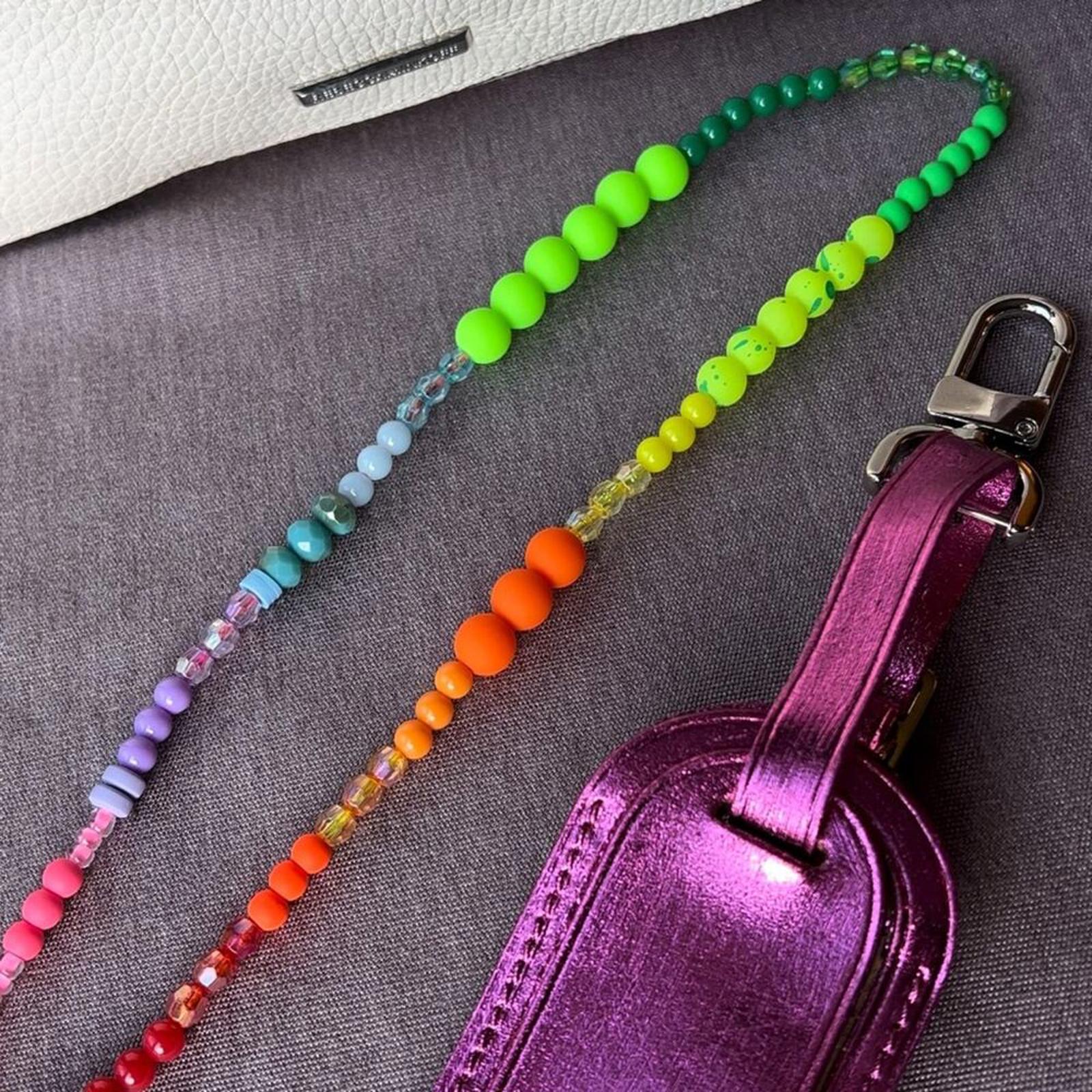 100% Authentic Louis Vuitton Large Metallic Pink Bag Charm with Rainbow Beaded Lasso Wrap Chain