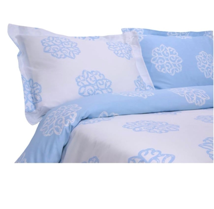 New in box MILENA light Blue and Ivory 310 Sateen Reversible Duvet set. Spruce up your bedroom or guestroom with this sateen duvet coverset. Featuring a nature/ floral print with a solid color in the reverse. This 310 count set is a pretty print which includes a duvet cover, two shams and is 100% cotton. Full/ Queen set includes 1 full/ queen 90”x90” and 2 standard shams 20x26. Made in India. Paid 45.00. Asking 30.00. The price is negotiable. Bundle and package deals are available.