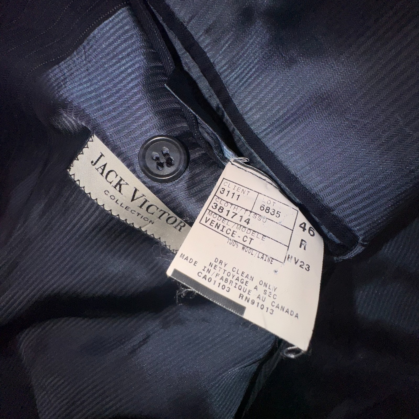 Jack Victor Jacket Mens 46R Blazer Navy Pinstripe Notch Lapel Single Breasted