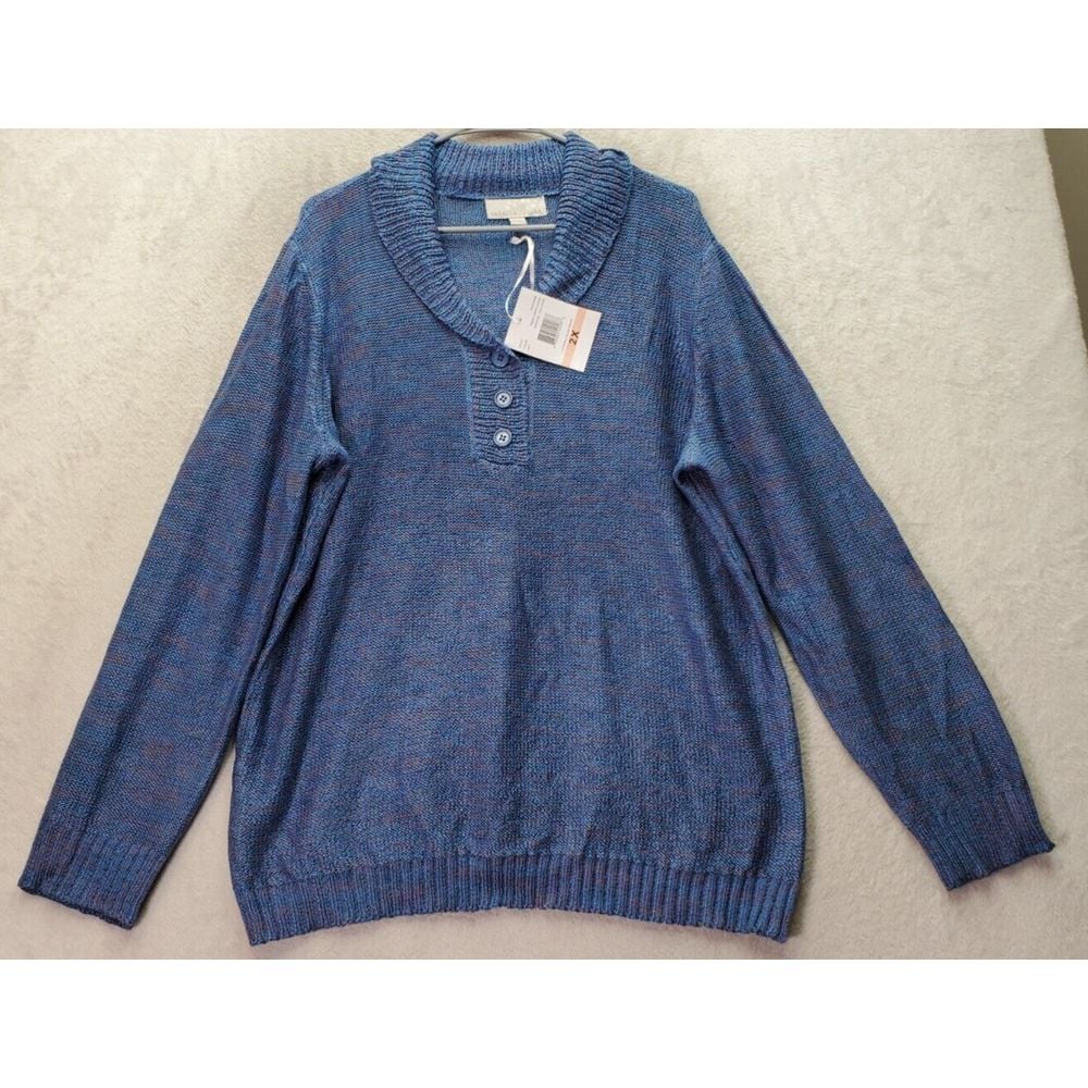 Carolyn Taylor Sweater Women 2X Blue Knit Long Sleeve Shawl Neck Button Pullover.