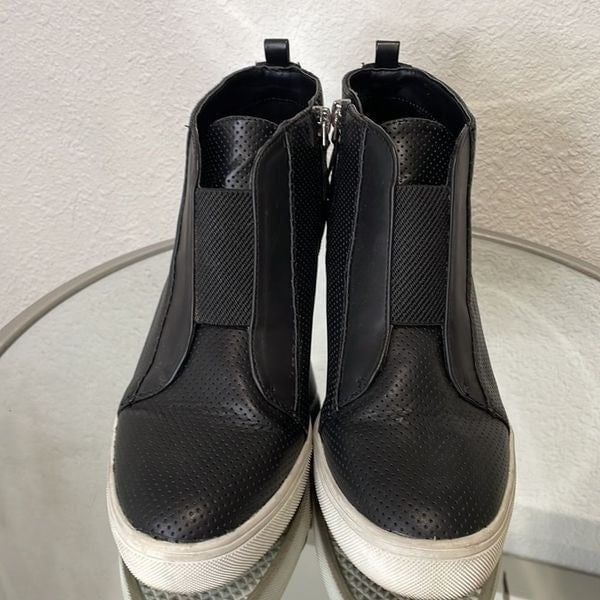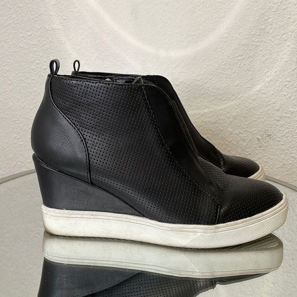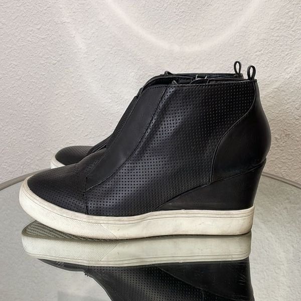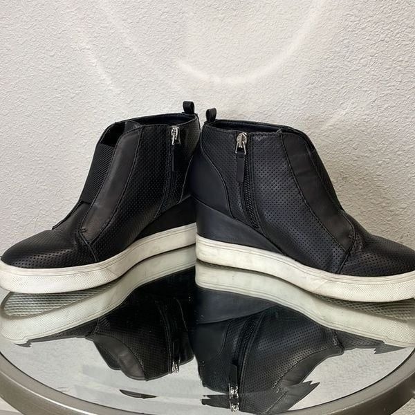 *Finally, the comfortable sneaker your foot wants mixed with the chic style your eyes want *Faux leather upper with perforated paneling *Inside zip closure with elastic goring on vamp for a secure fit *Lightly cushioned footbed *2-3/4" wedge heel