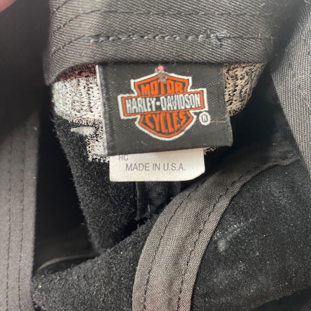 Harley Davidson Leather Newsboy Hat Black Embroidered Biker Cap Mens Large to XL Vintage. Very clean and well-kept condition. No major damage or stains that we saw at all. May have Some light wear from use and storage but still in good condition.