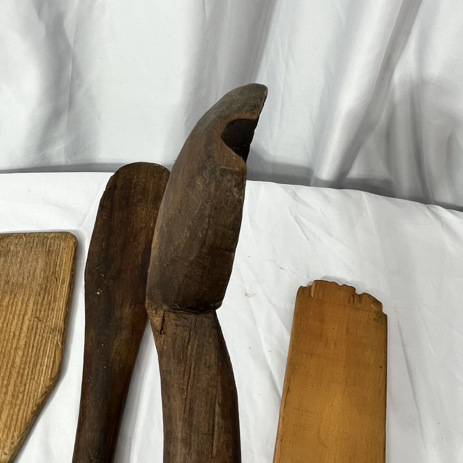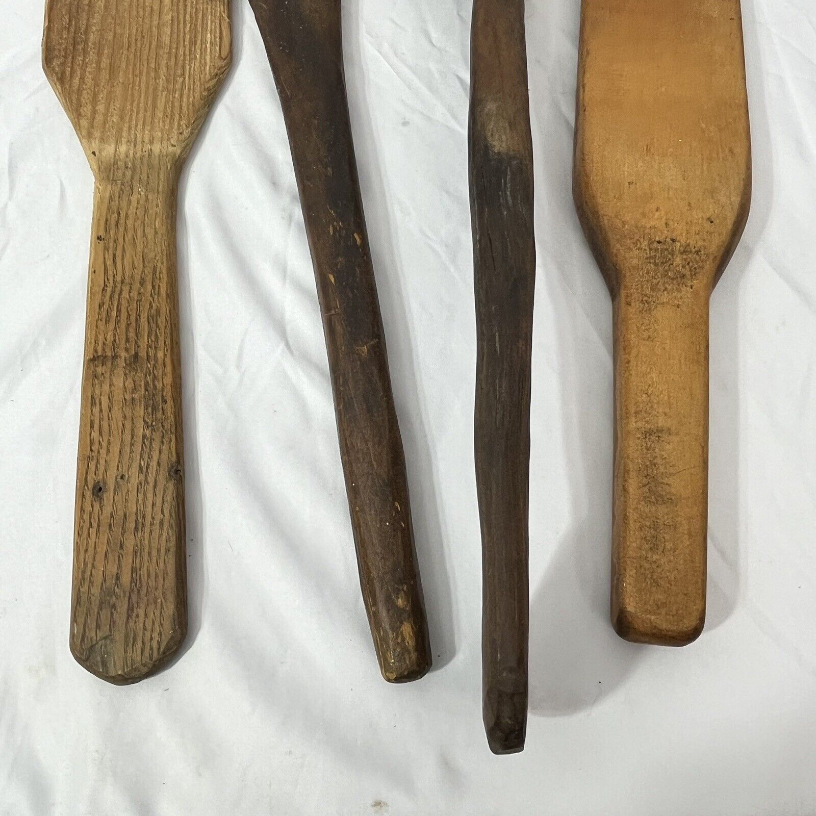 4 Large Wooden Spoon Ladle Mixing Paddle Hand Carved Wood Antique Vintage