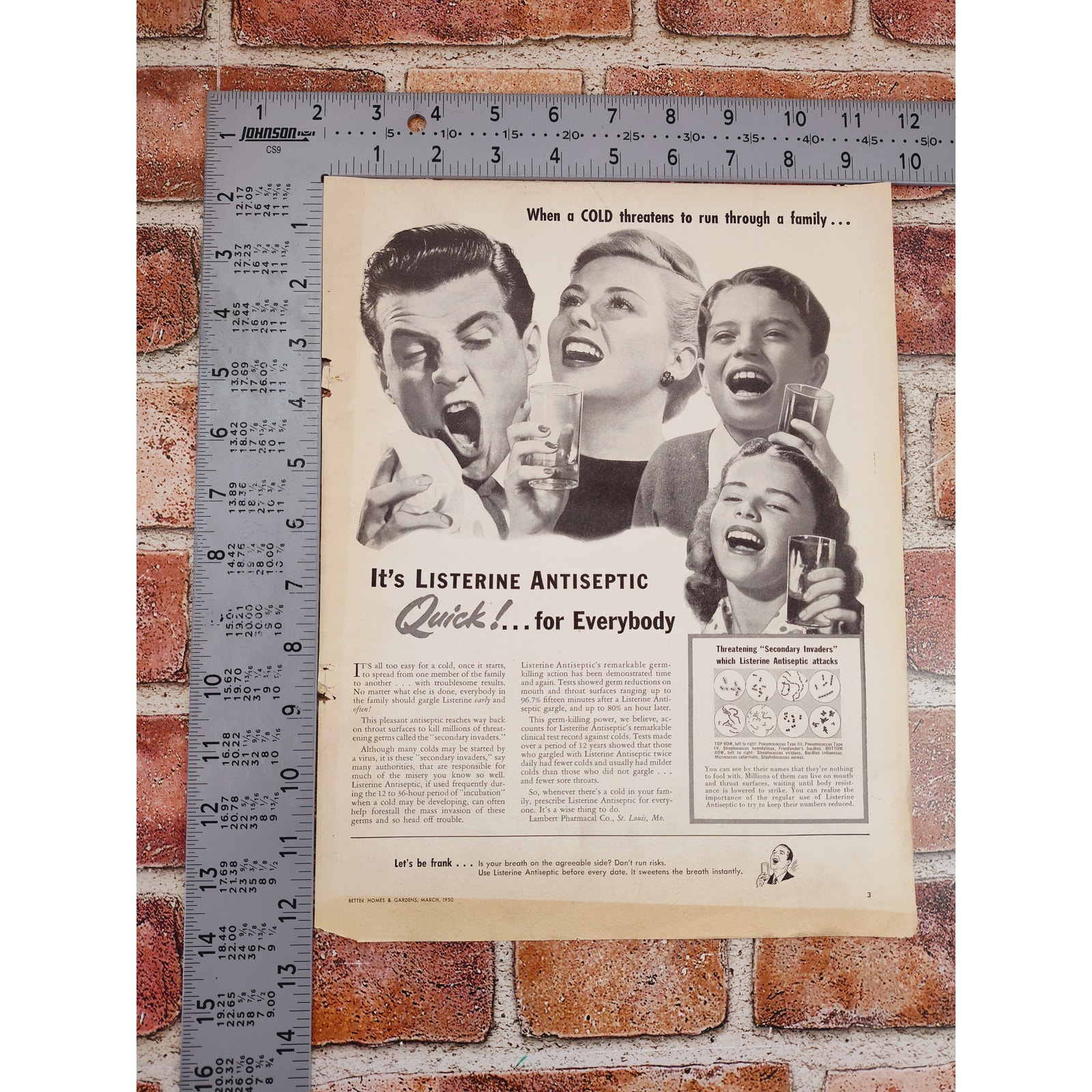 1950 When a Cold Threatens - Listerine Antiseptic Quick! Sneezing Family Vtg Print Ad