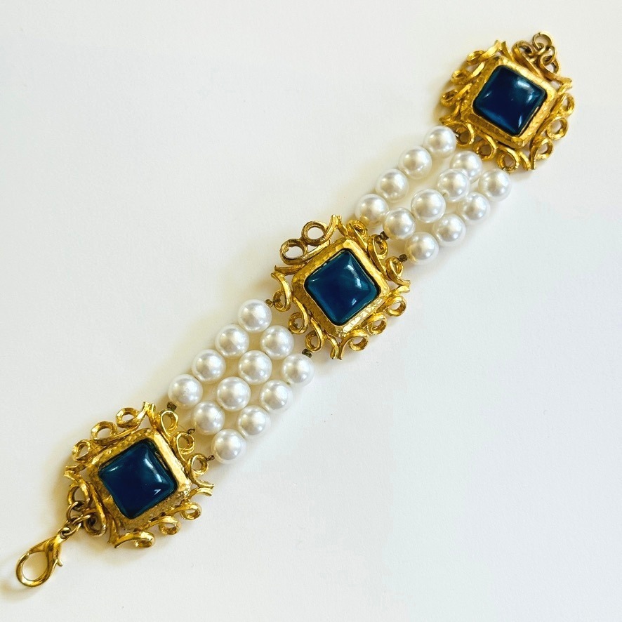 Bracelet VTG Regal Pearl acrylic Cabochon Gold gilt Chunky Statement high end