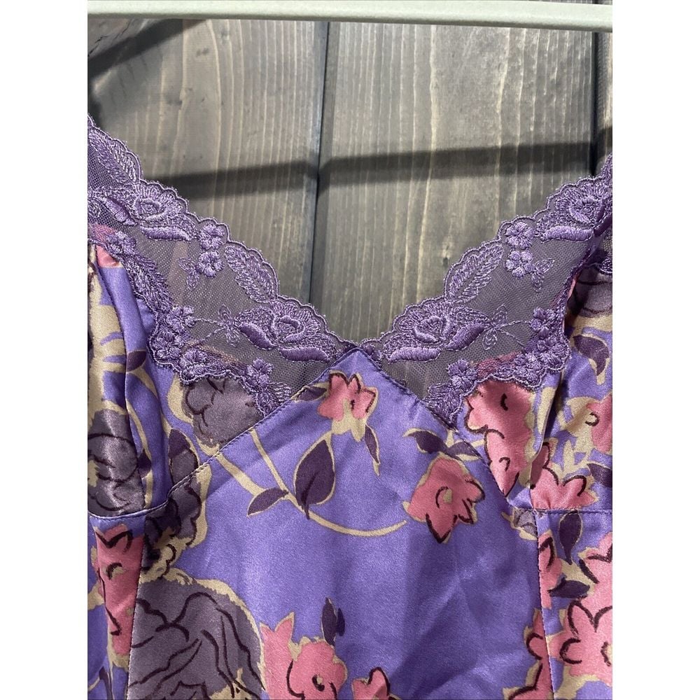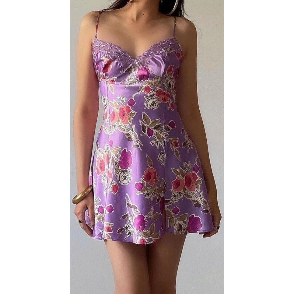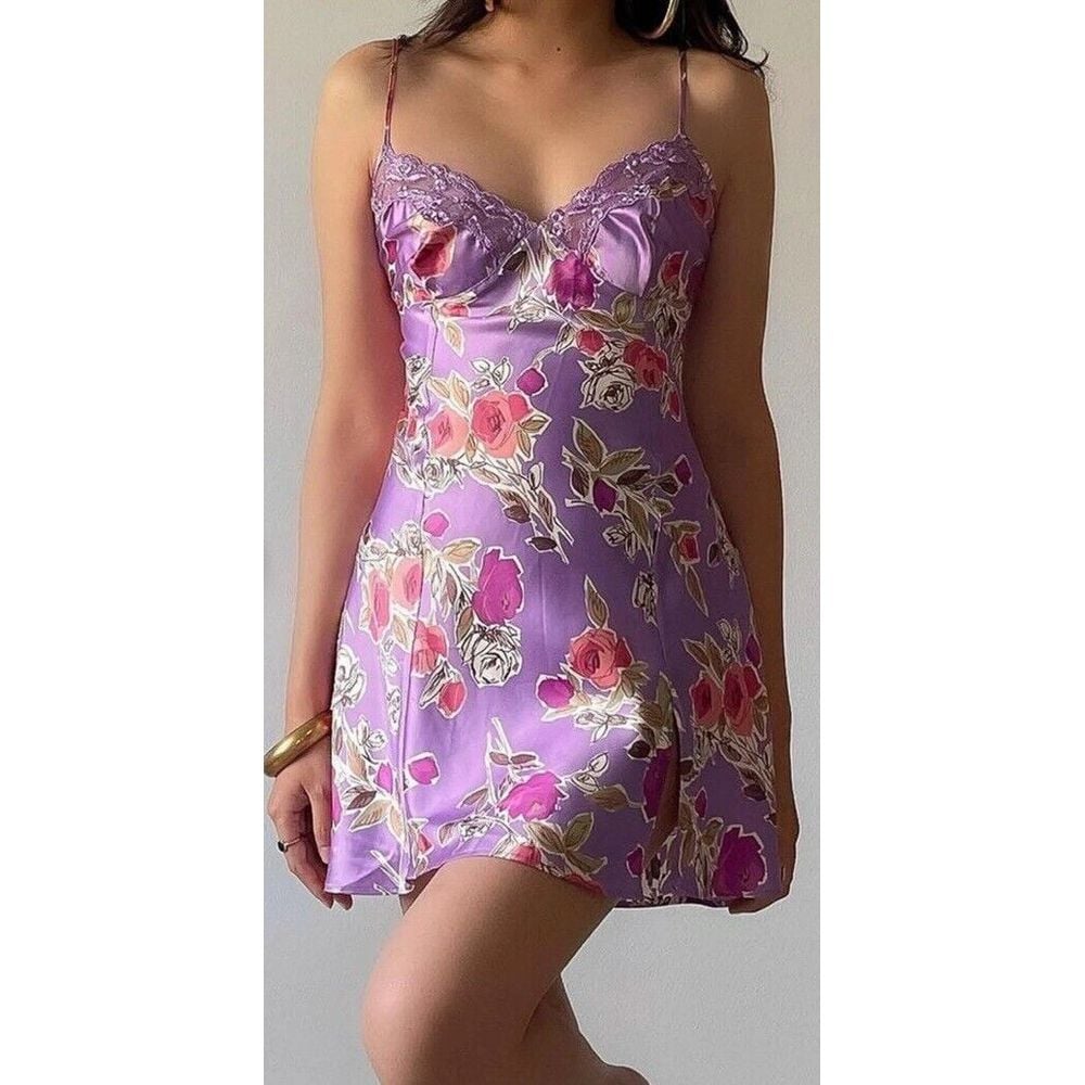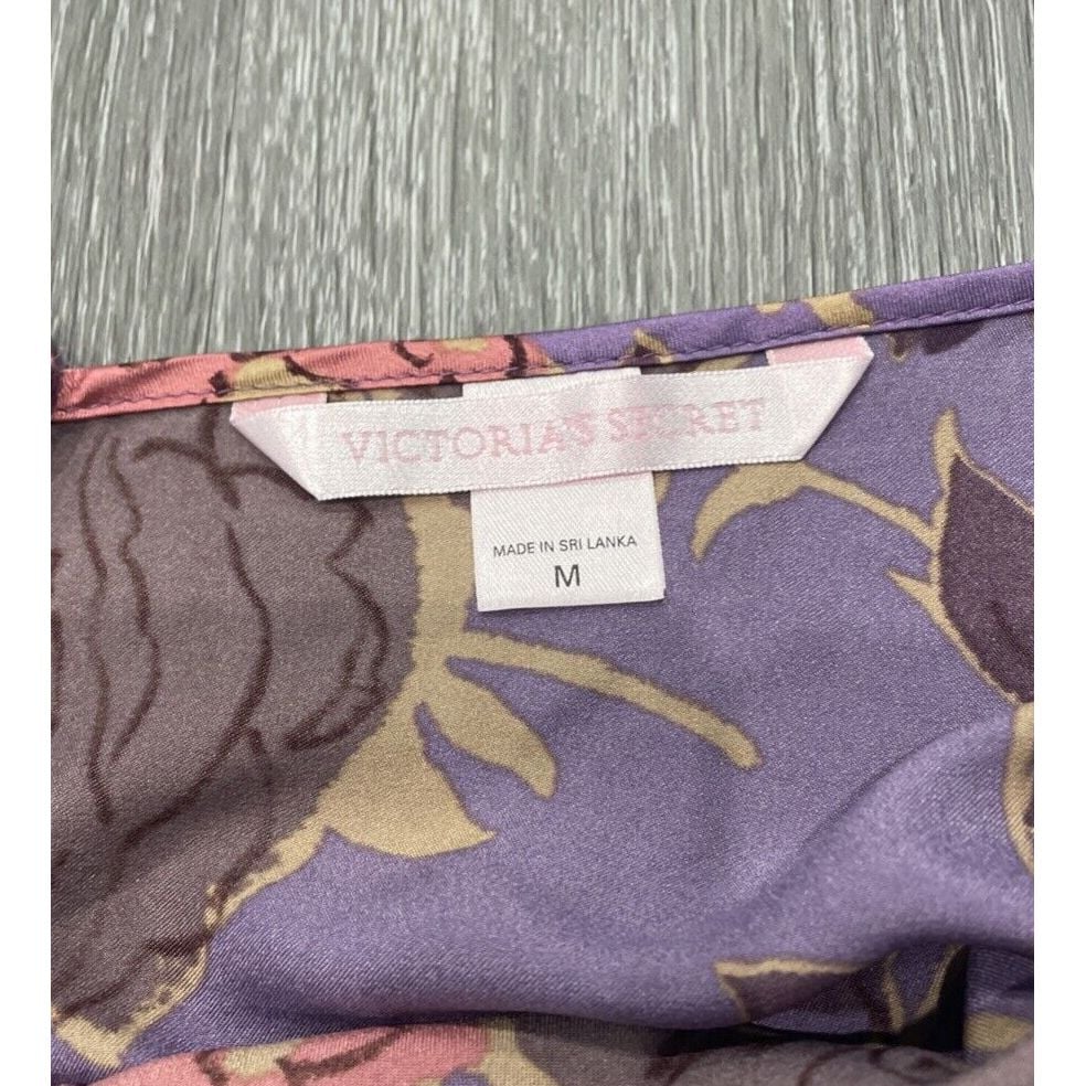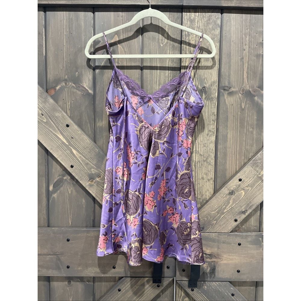 This vintage Victoria's Secret mini slip dress in size M features a luxurious silky satin material in a beautiful purple floral design. Designed for everyday wear, this intimate piece is made of polyester in Sri Lanka. The regular size type and M size make it a versatile addition to any lingerie collection, perfect for adding a touch of vintage charm to your outfit.