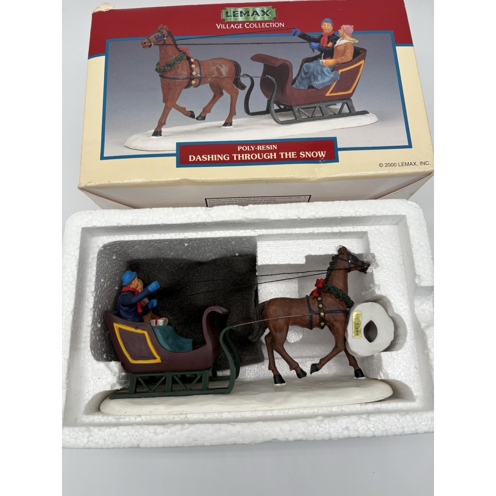 • Lemax "Dashing Through the Snow" / "Randonnée Dans la Neige" Horse & Sleigh Set (2000 release, poly-resin)