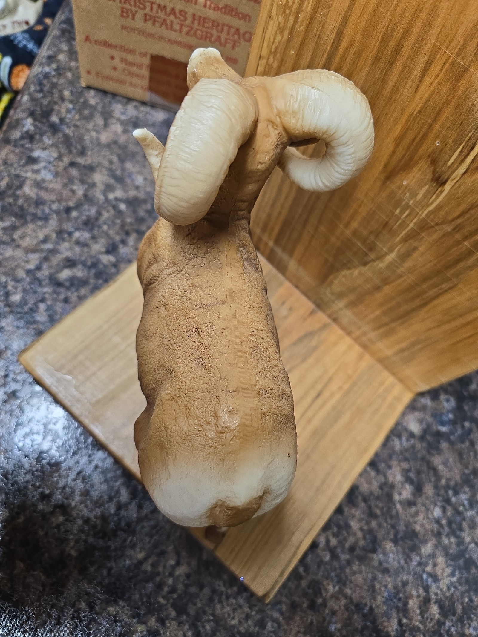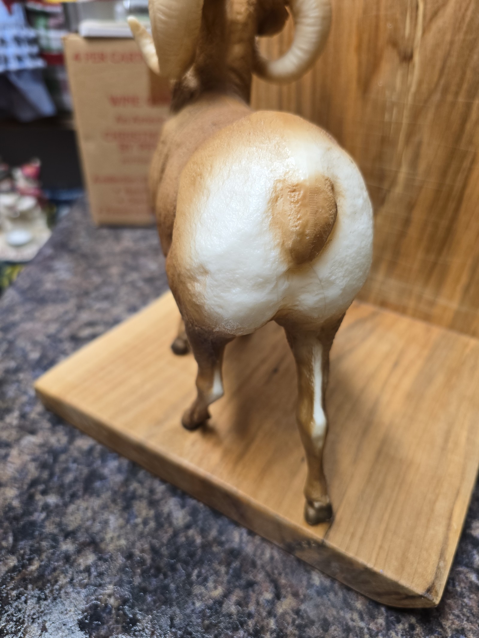 Color: Medium brown to reddish-brown with a tan nose and rump, and tan horns.