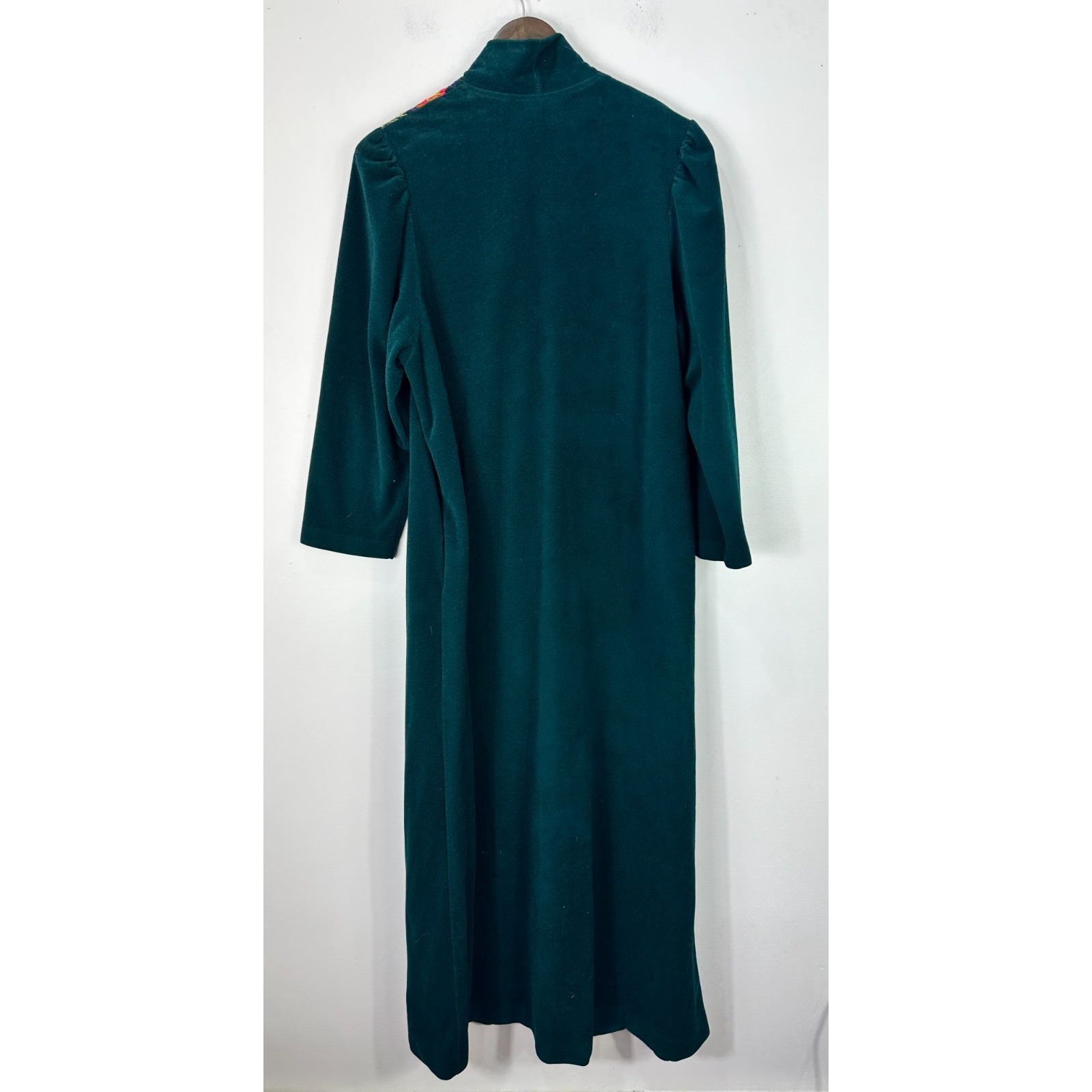 Vintage Vanity Fair Robe M Green Embroidered Maxi Duster Lounge Boho Cottagecore