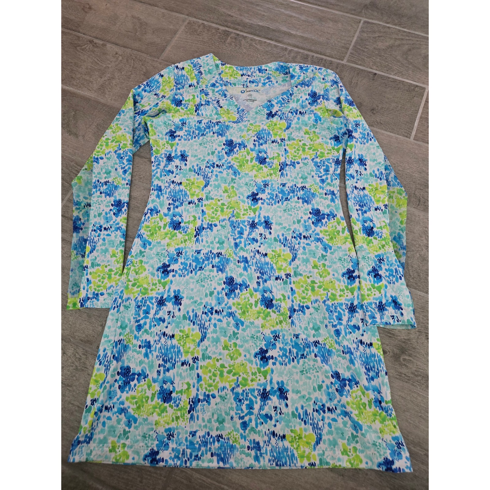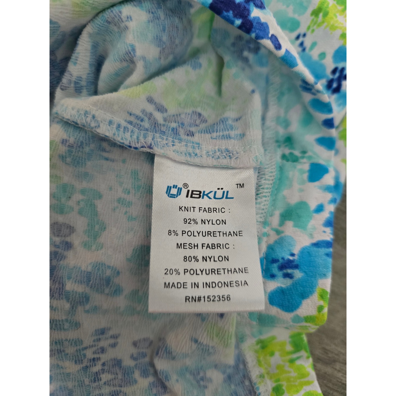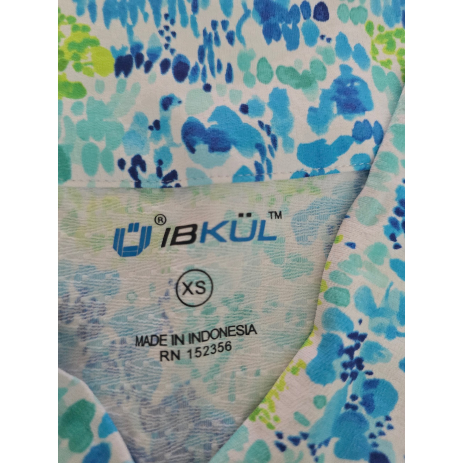 IBKUL sun protective dress, a stylish and functional piece designed for outdoor activities. This dress features a vibrant floral print in shades of blue and green, offering a fresh and eye-catching look. With long sleeves and a V-neck, it provides ample coverage and a flattering silhouette. Perfect for golf outings, beach trips, or casual outdoor gatherings, this dress combines fashion with sun safety.