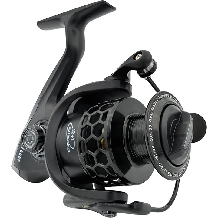 Fishdrops Spinning Fishing Reel with 12+1 High-rated Ball Bearings and one-way clutch system, an anti-reverse system, and a High-Speed Gear Ratio of 5.1:1/5.5:1/4.7:1, which makes the reels more smooth and have a good performance.
