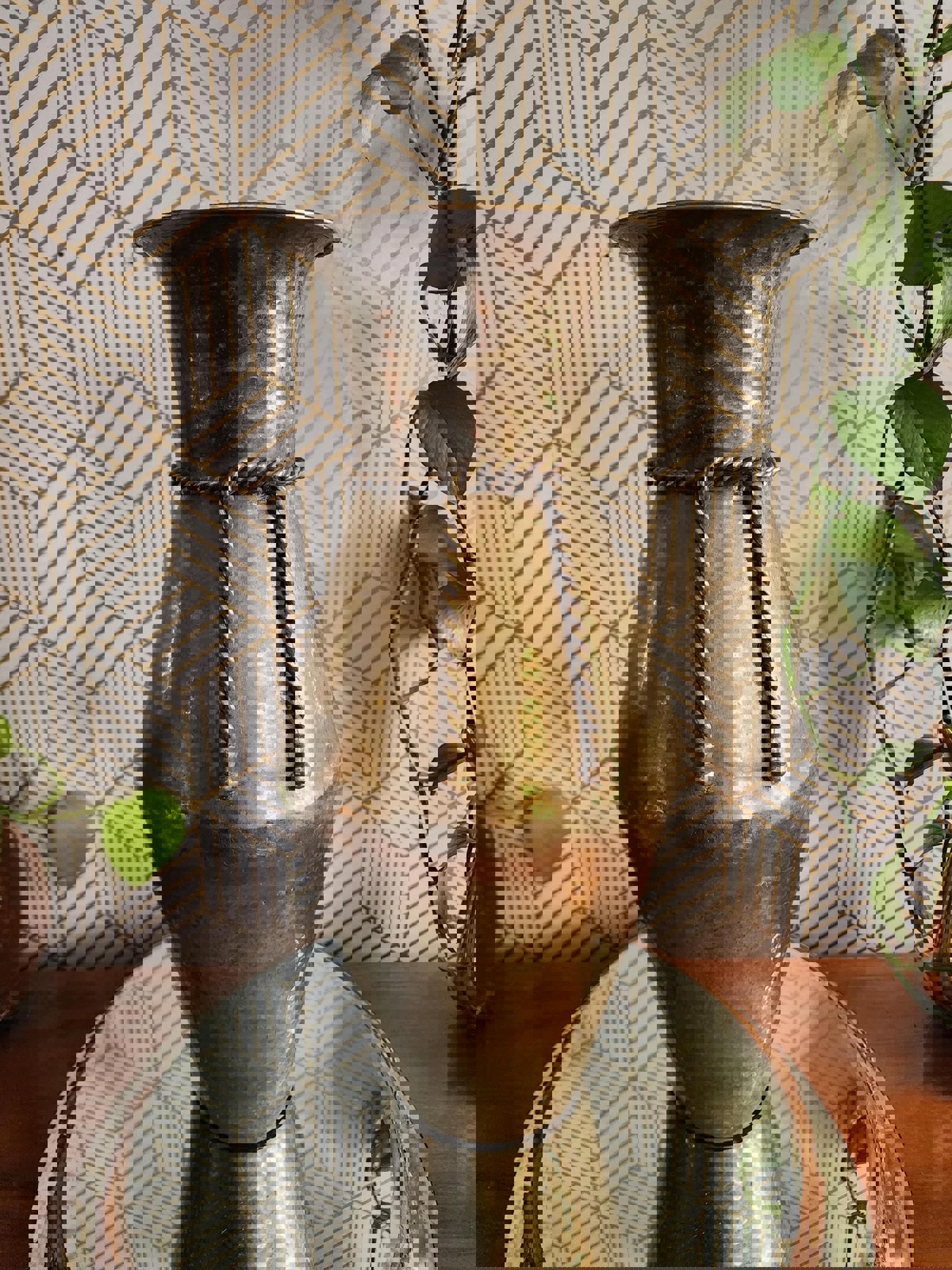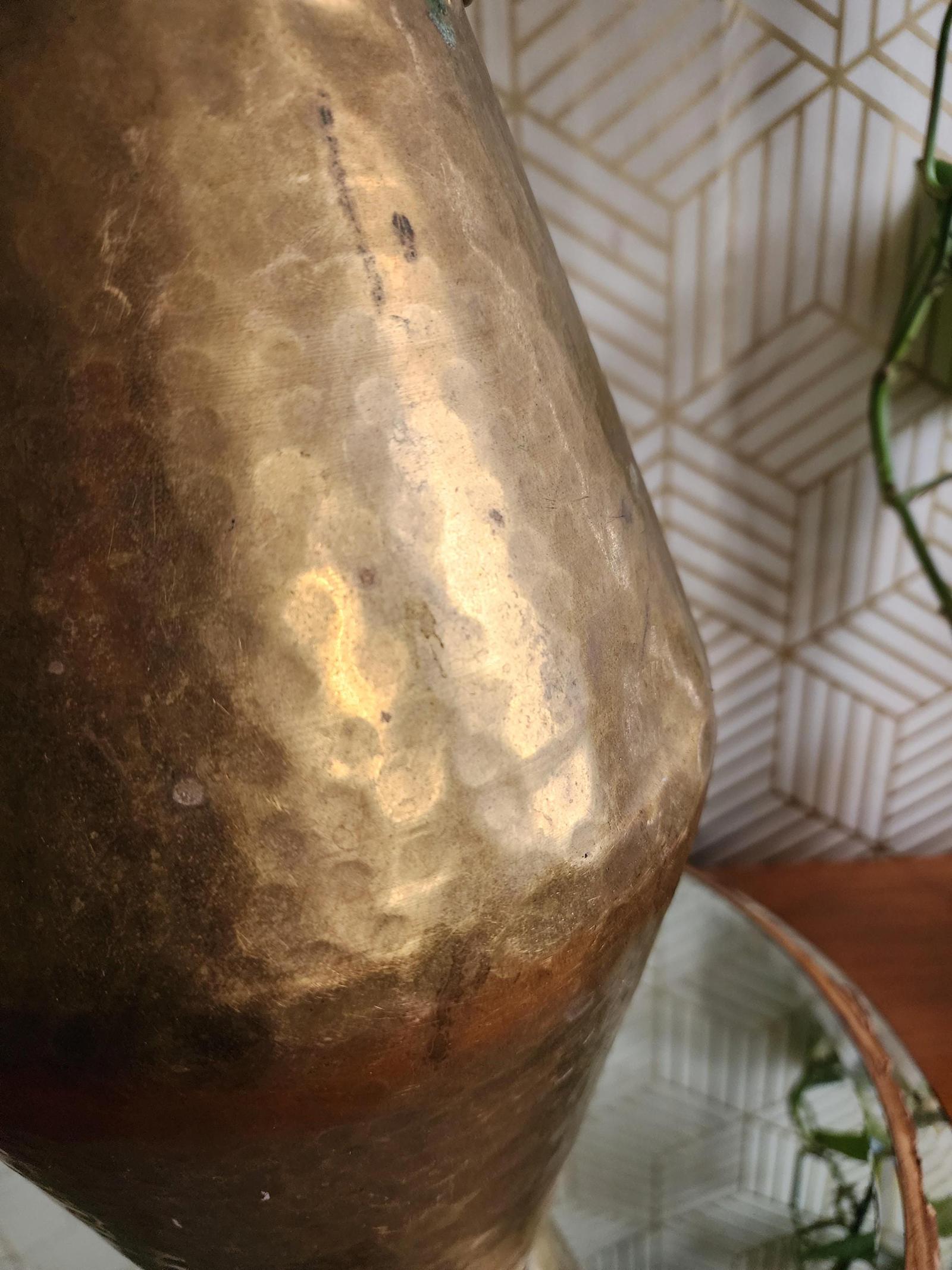 Vintage Tall Hammered Brass Vase | Planter With Rope Tassles. 16" Tall 8" diameter.
