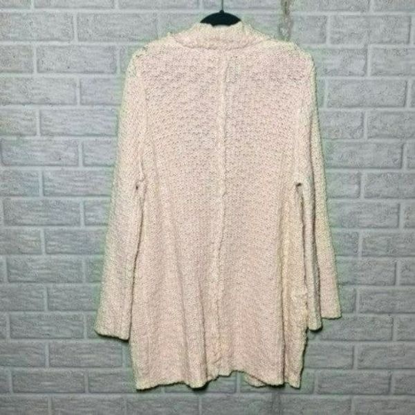 A thick knit cardigan features a mock neck collar and large patch pockets. Mock neck - Long sleeves - Open front - Front patch pockets - Knit construction - Approx. 33-35" length - Imported