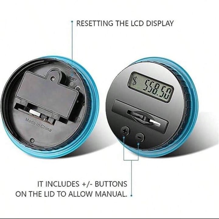 Save smarter with this large 1.8L digital coin jar! Features an LCD counter that tracks every coin you drop in. Fits all US coins—perfect for adults, kids, or as a gift. Durable, clear design lets you see your savings grow. Great for home or office use. Batteries not included.
