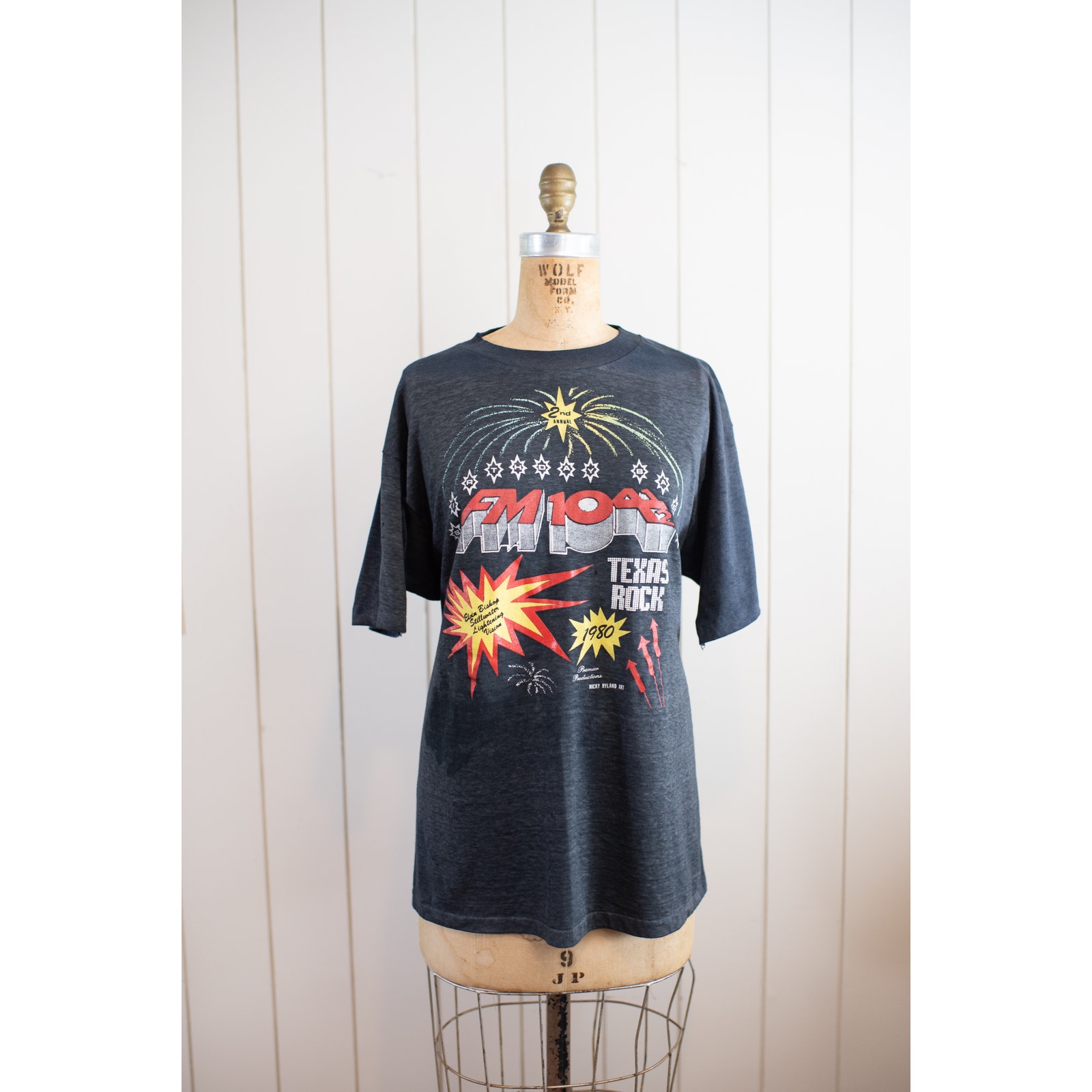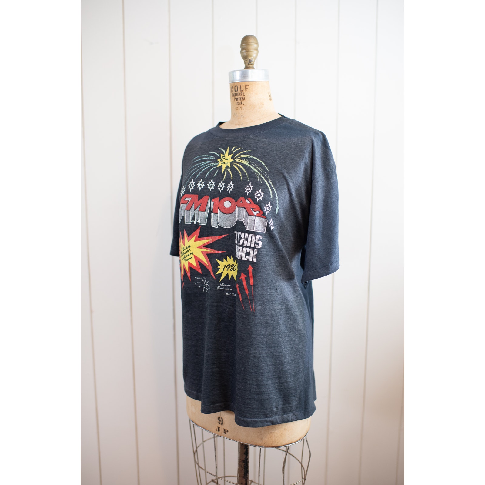 Really cool single stitch hem 1980 t-shirt '104.5 - Texas Rock t-shirt by Hanes - Combed 50-50 blend.