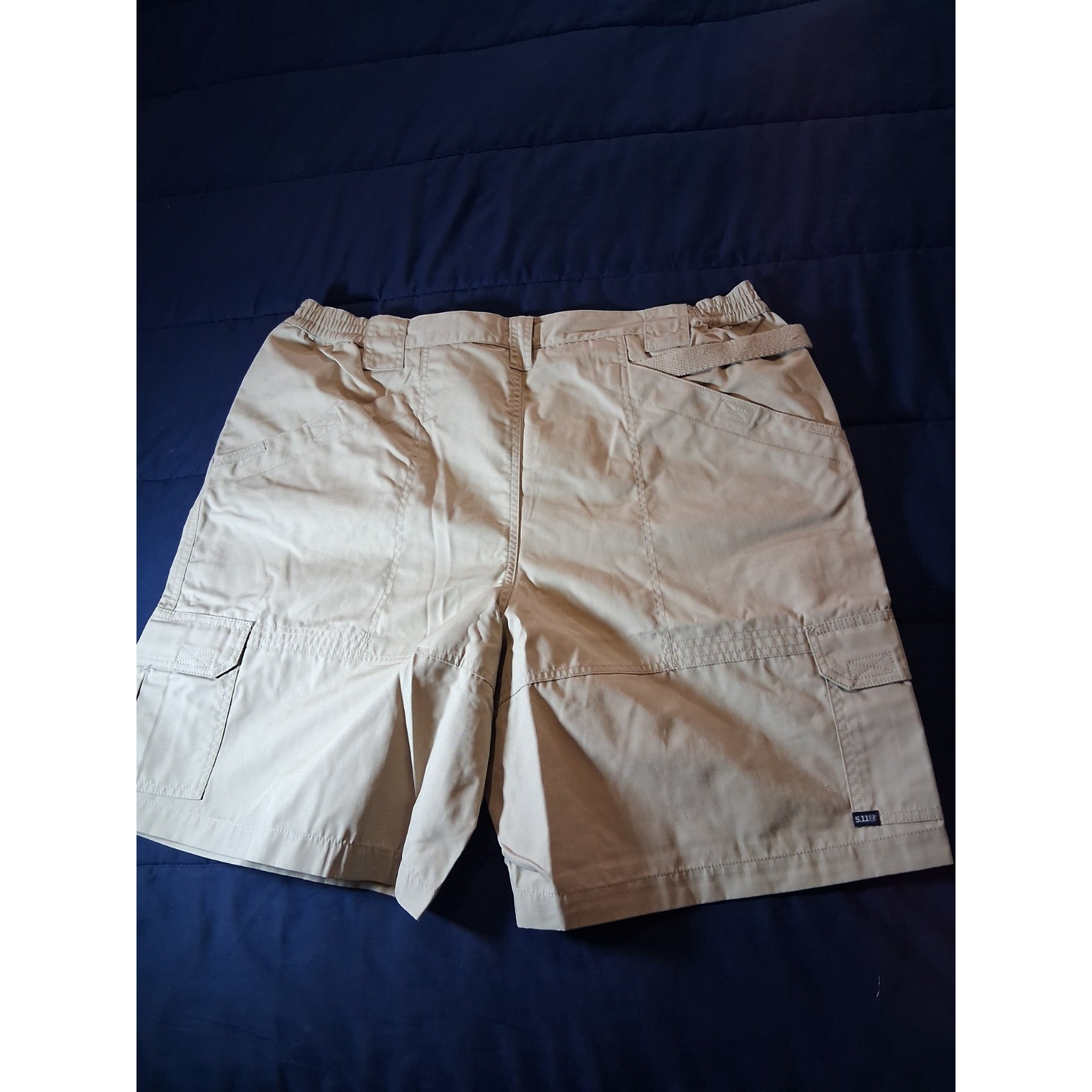 The 5.11 Tactical Men's Taclite Pro 9.5" Short 73287 in Beige color and size 42 is a versatile and durable pair of men's cargo shorts designed for tactical use. Made from high-quality fabric with a dark wash, these shorts feature a comfortable regular fit and a classic black color that is easy to match with other items in the wardrobe. The 5.11 Tactical brand ensures reliability and functionality, making these shorts a practical choice for outdoor activities or everyday wear.