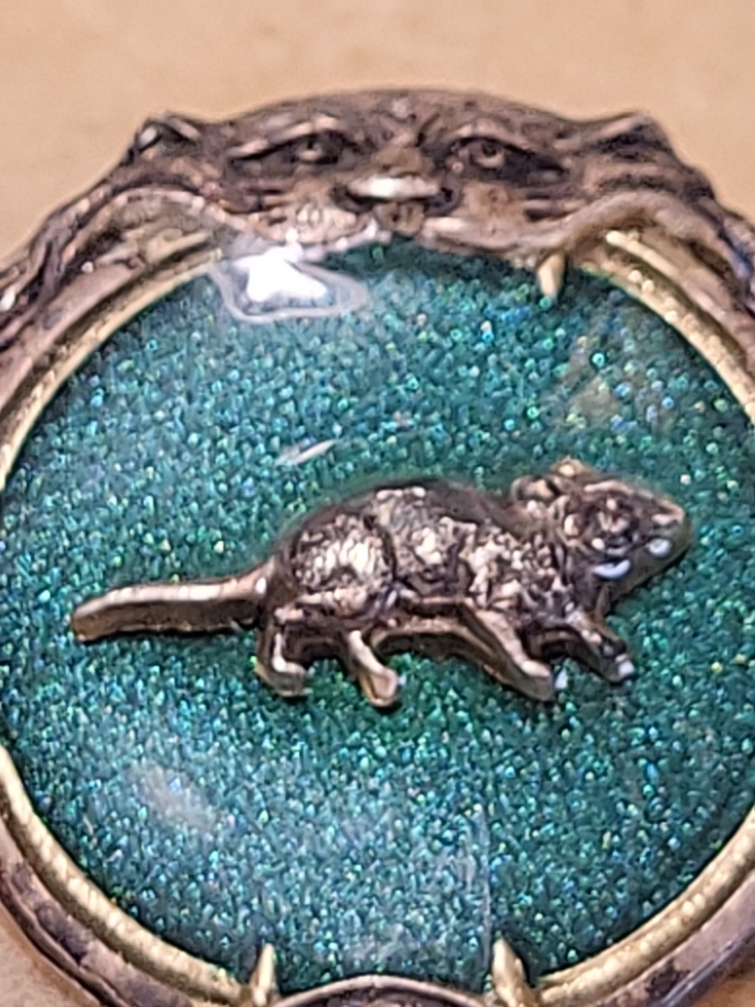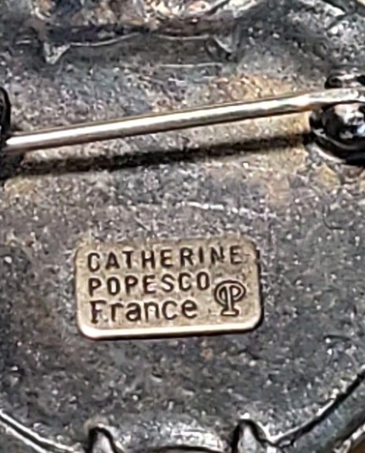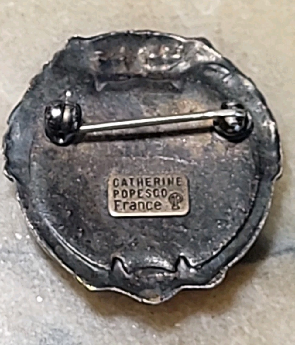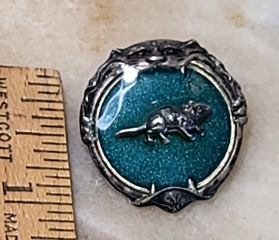 Vintage Catherine Popesco Brooch Cat Open Mouth Mouse Rat Green Enamel France