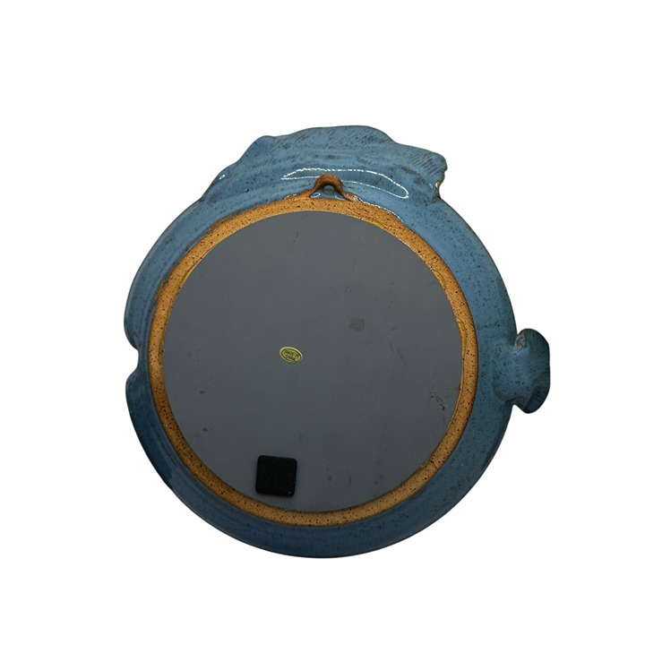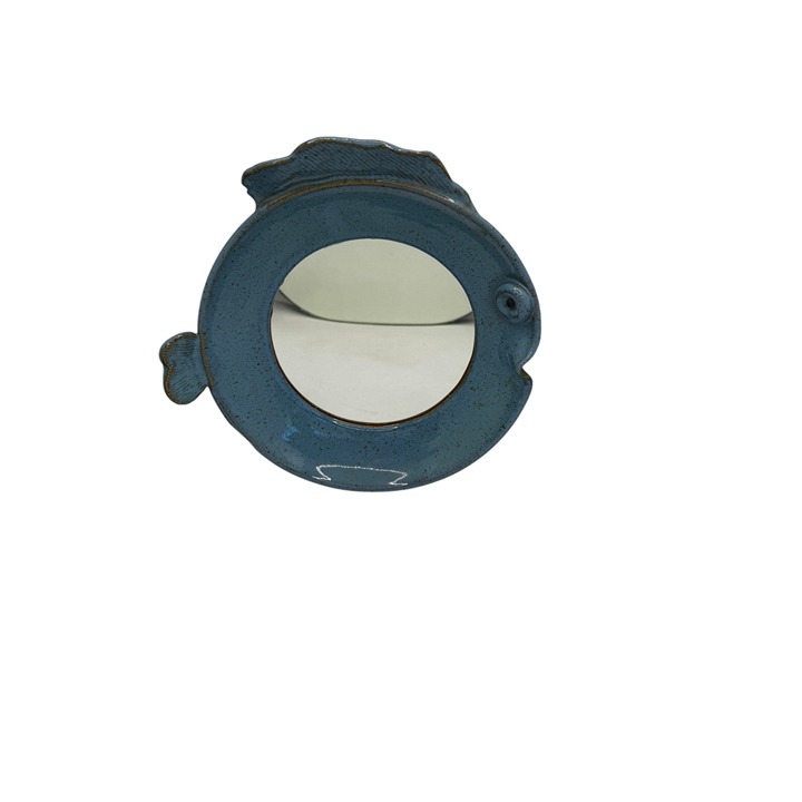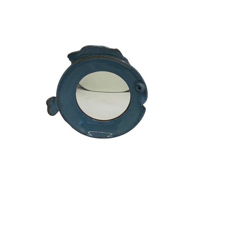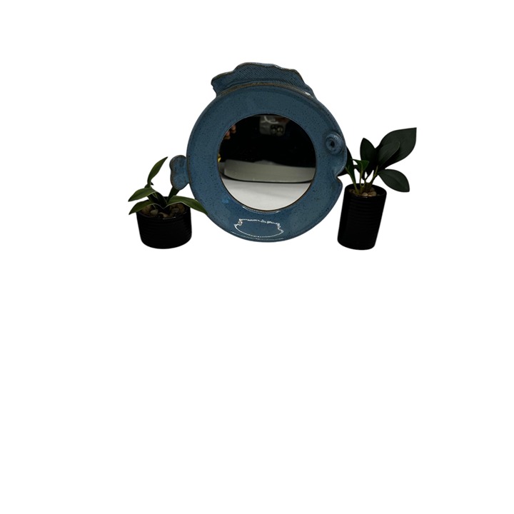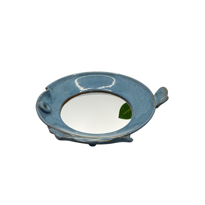 This ceramic mirror, shaped like a fish, adds a touch of creativity to dining displays. Its blue finish provides a calming effect, enhancing aesthetics. Approx. size 9.25" H x 9.25" W x 2" D.