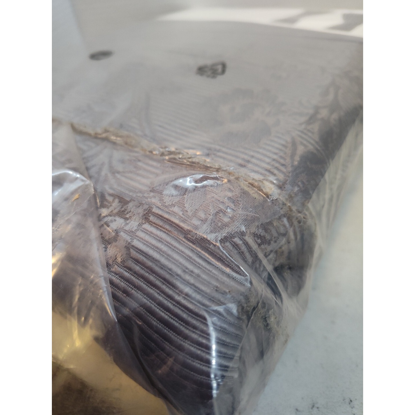 These are brand new and in damaged packaging. They appear to have had been pulled open and yet never removed from the packaging itself. They have a beautiful floral pattern with stripes. And they are quite heavy, so please note that shipping will seem high. They will simply be sent in a mylar bag to help keep the weight low. Thanks for looking!