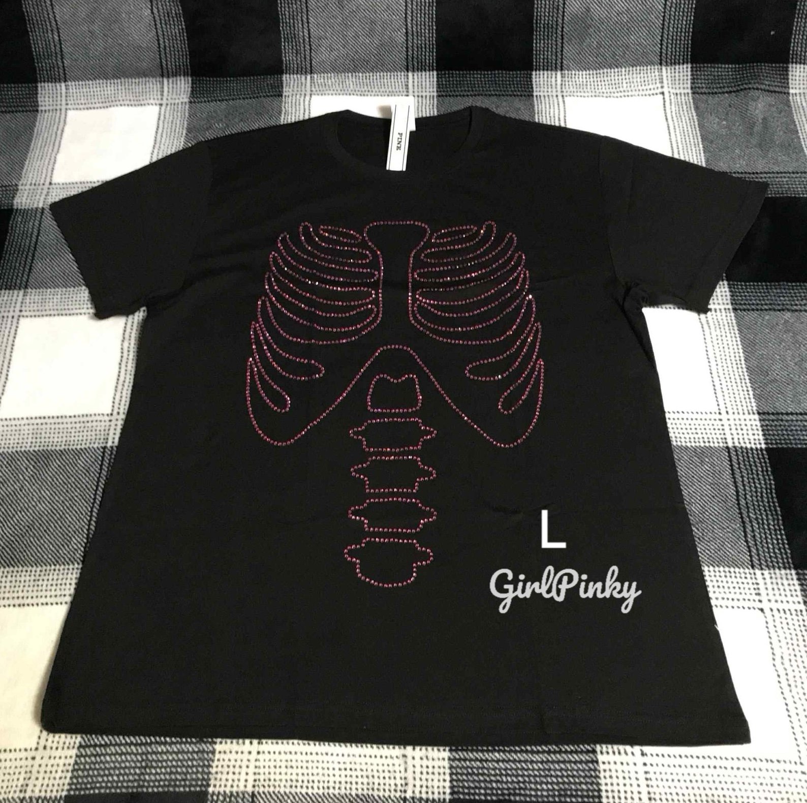 SOLID BLACK SHORT SLEEVE CAMPUS TEE WITH CARMINE ROSE BLING SKELETON LOGO DESIGN ON THE FRONT. THIS TEE HAS DOES FIT OVERSIZED.