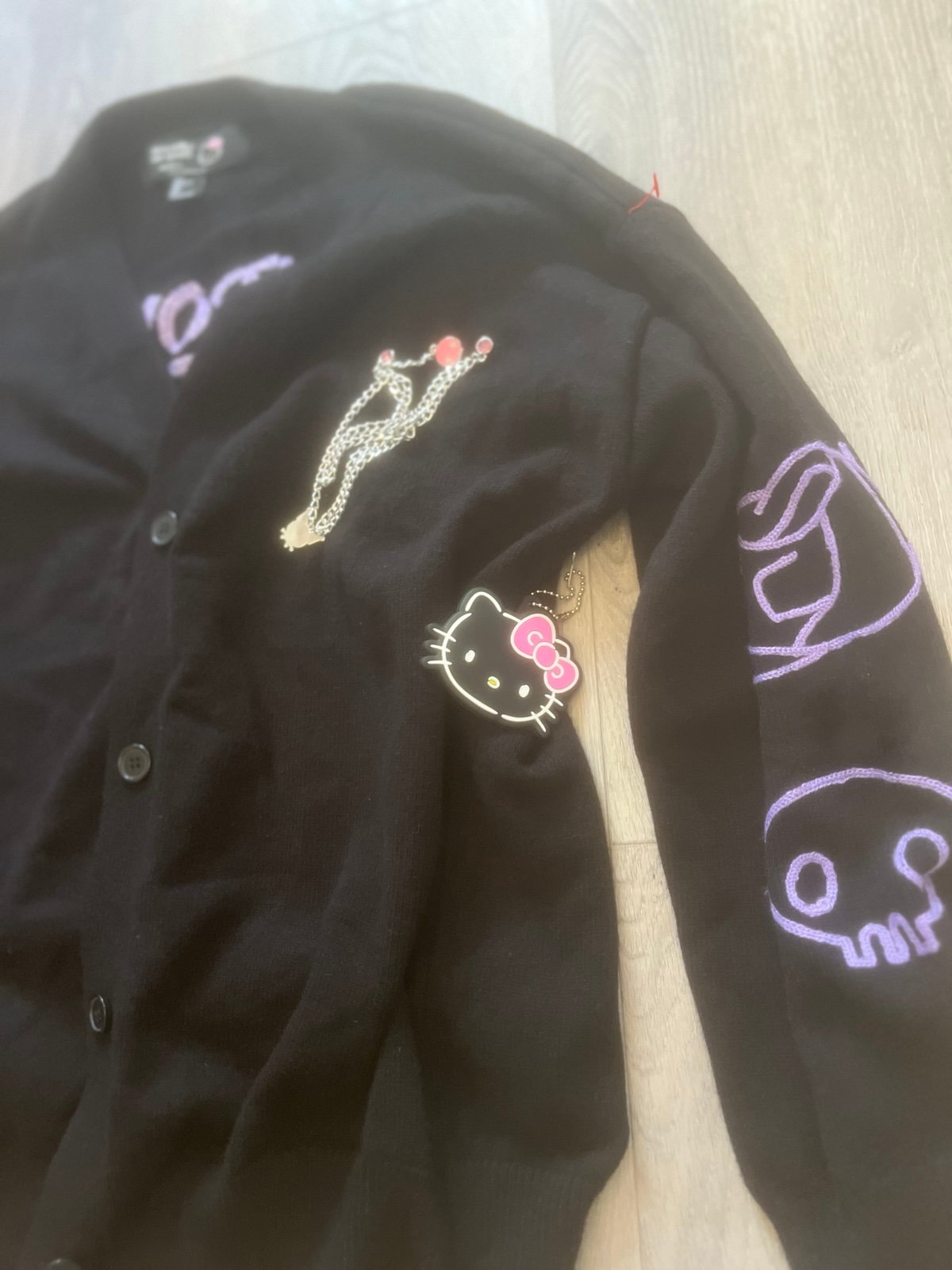 Forever 21 x Hello Kitty & Friends Knit Kuromi Chain Black Cardigan Medium NWT