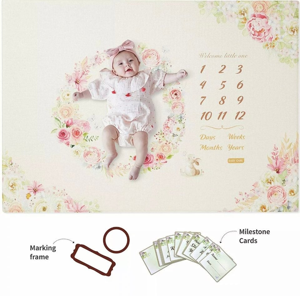 Baby Care Milestone Play Mat – Reach for The Moon and Stars – Monthly Milestone Baby Mat – Baby Tummy Time – Photo Background mat – for Infant Boy Girl Unisex Maternity Gift