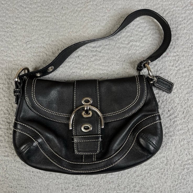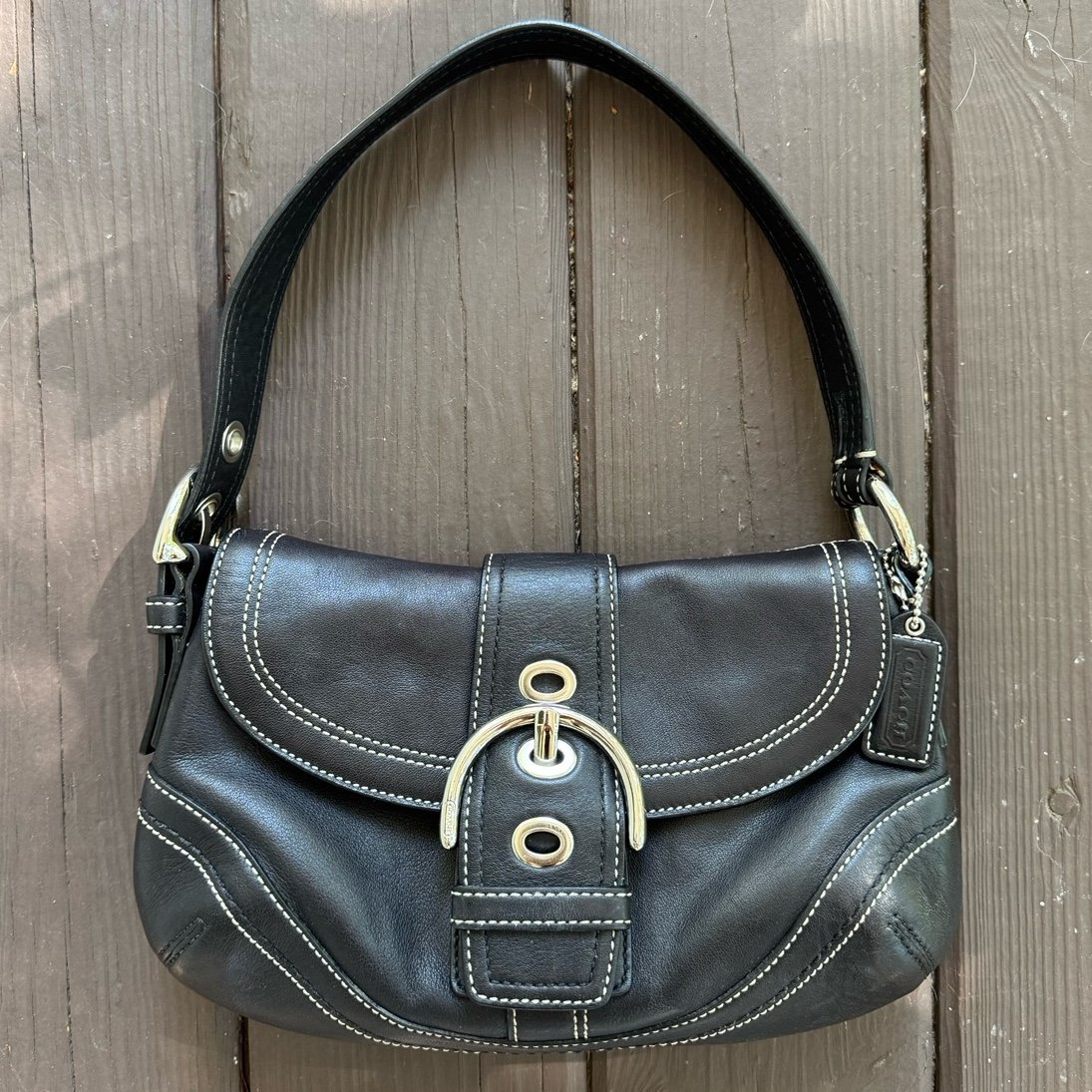 Black Coach soho shoulder bag. mini size, about 9”x6”. silver hardware. rare vintage. leather is in amazing condition, hardware has a few scuffs but not too bad! freshly conditioned and polished! shipping price included. #leatherbag #y2k #vintage #soho #CoachBag