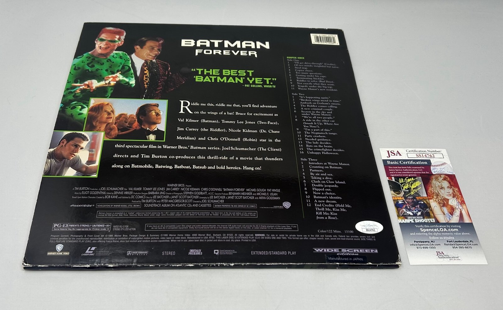 Rick Baker the makeup artist for Batman forever and other Hollywood movies signed Batman Forever laser disc album. This has been authenticated by JSA the #1 autograph authenticator in the business. Price is firm