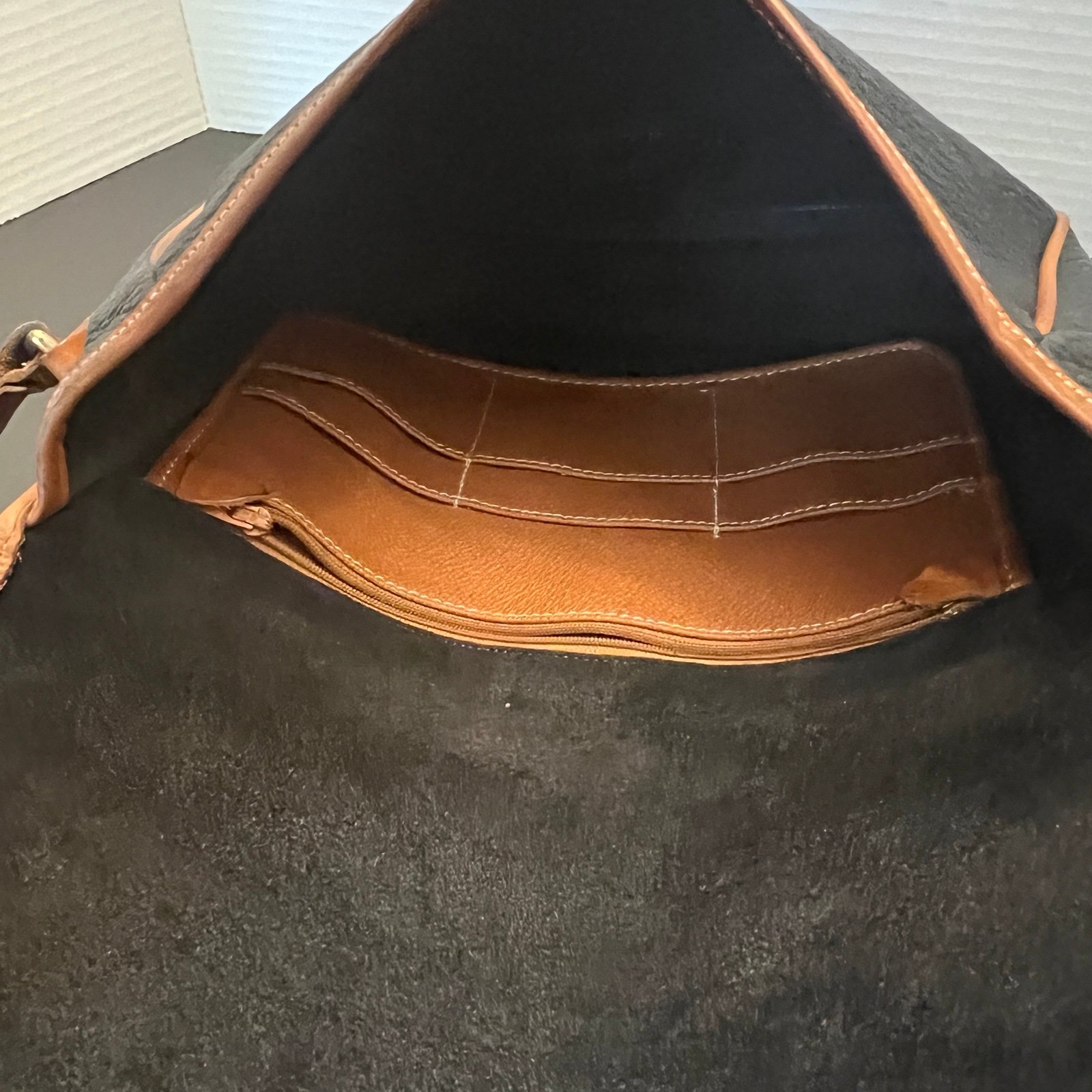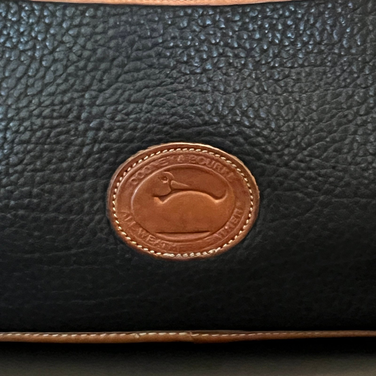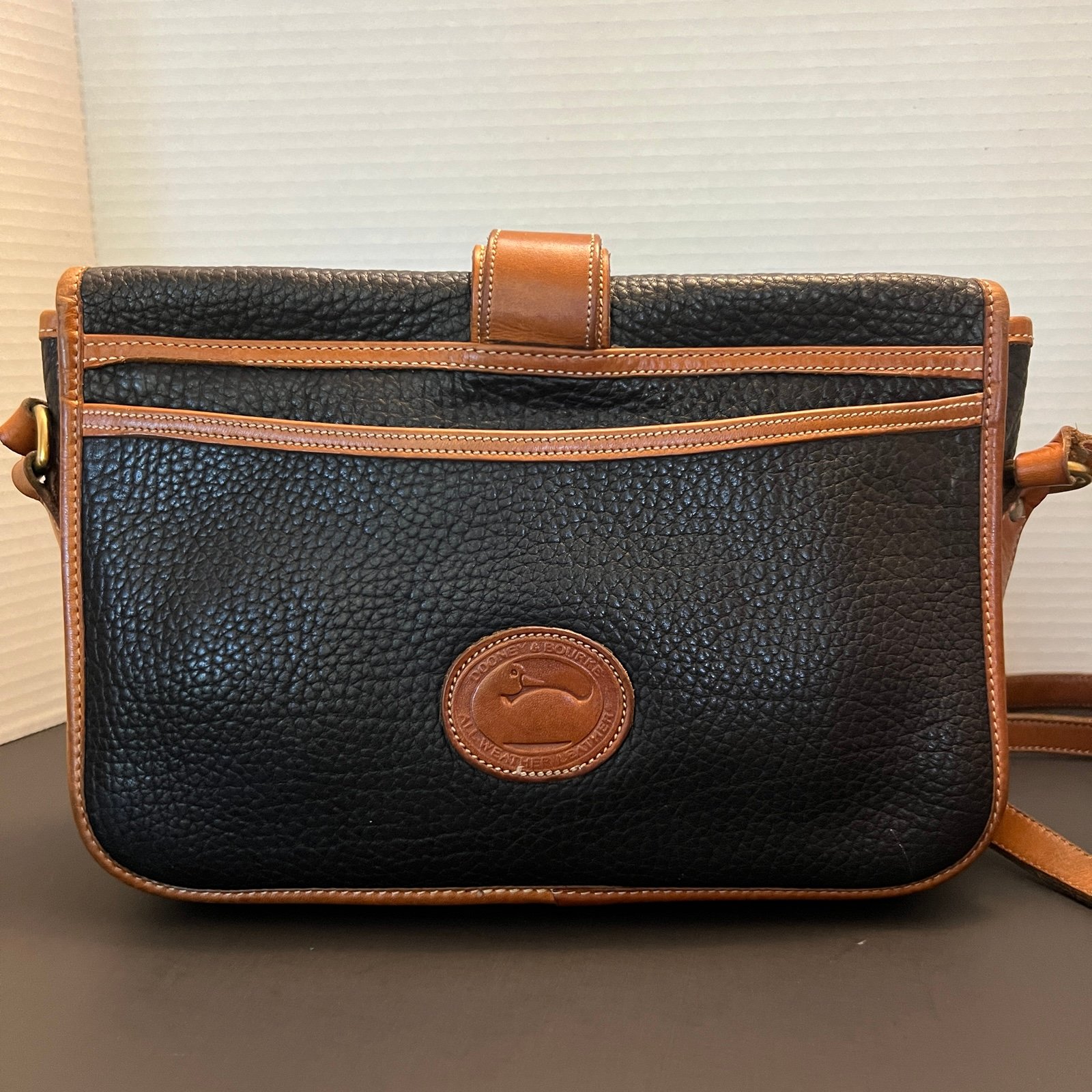 Exterior back slip pocket . This vintage Dooney & Bourke bag is perfect for everyday use, offering a blend of classic style, durability, and timeless appeal.