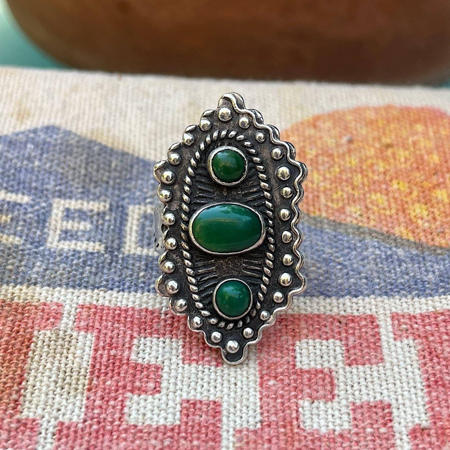VTG Fred Harvey Native 3-Stone Sterling Silver Ring Sz 6.25