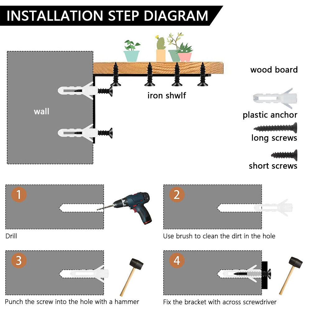 High Quality Shelf Brackets Include all Hardware: This L Shape shelf brackets set are made of high-quality iron material with high-quality anti-rust paint on the surface, which is hard and strong enough.