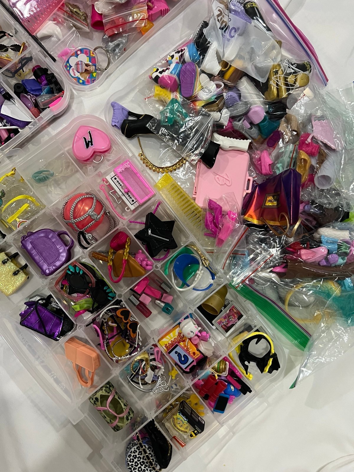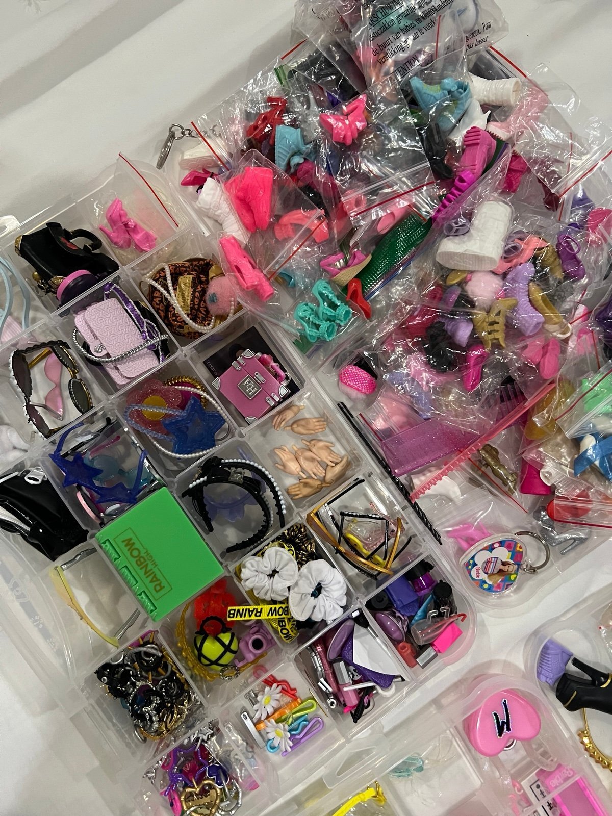 Rainbow high,Barbie’s,lol and more accessories,shoes,earrings,glasses,bags,necklaces & some extra legs.