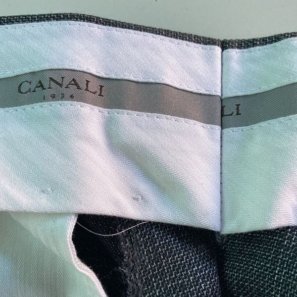 May have been altered at back of waist as the Canali logo is missing some letters on the inside of the waistband.