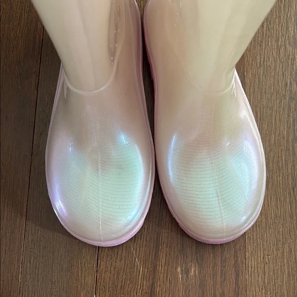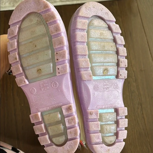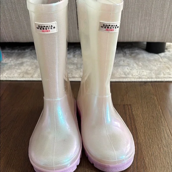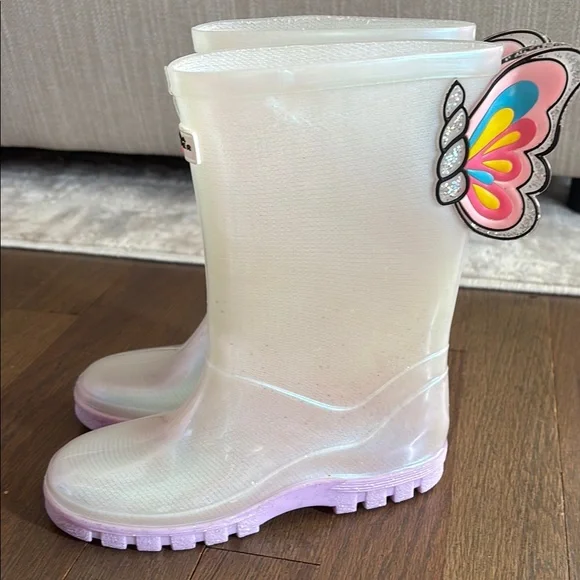 Brighten up rainy days with these adorable kids' butterfly rain boots. Featuring vibrant multicolor wings, these boots are perfect for splashing in puddles. Durable and stylish, they are a must-have for any child's wardrobe. Sold out everywhere, if not sizes are very limited. Worn handful of times, in great condition.