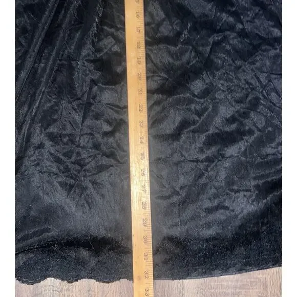 The Vintage Shadowline Black Lingerie Sweep Lace Bodice Long Nightgown is a stunning piece with a classic Hollywood Glamour vibe. This sleeveless gown features a V-neckline, slip-on closure, and intricate lace accents. Made of silky nylon fabric, it offers a flattering silhouette with an empire waist and floor-length hem. Perfect for all seasons, this full-length gown exudes a timeless elegance reminiscent of the 70s era. Machine washable for easy care, this vintage piece is a must-have for any woman's sleepwear collection.