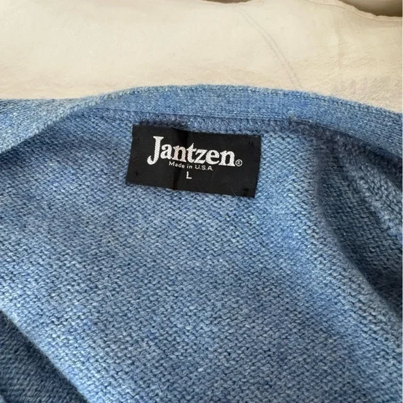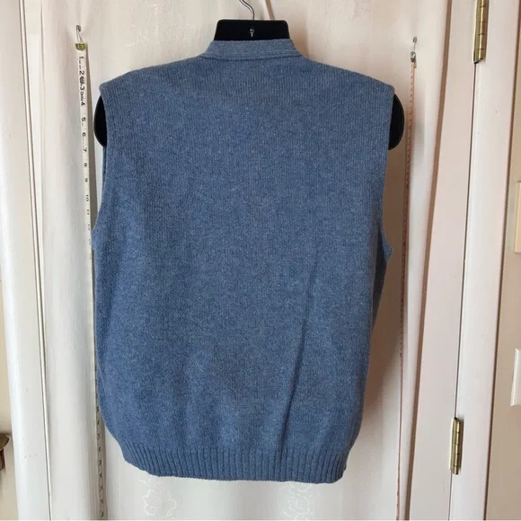 Vintage Men's Jantzen Sweater Vest. Mid-weight, not the softest but it is a wool blend. Love the old school leather patchwork buttons (I'm sure there's a technical name for them - but that's what I call them). Perfect for layering or pipe smoking or reading or proctoring exams. Wool acrylic blend, made in USA. Pit to pit - 20, back collar to hem - 28. Has pockets.