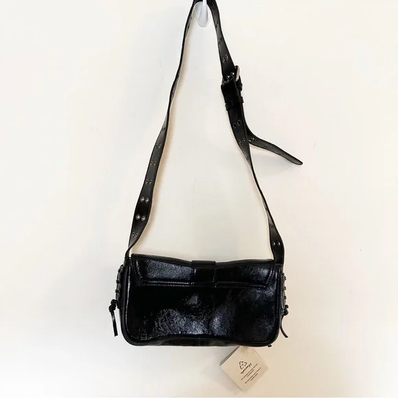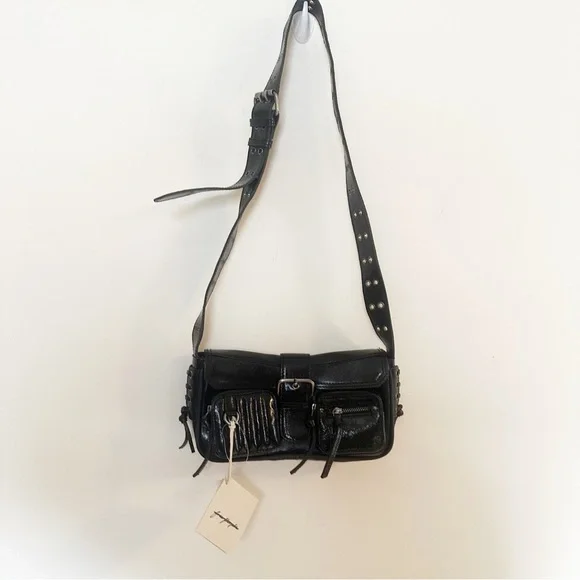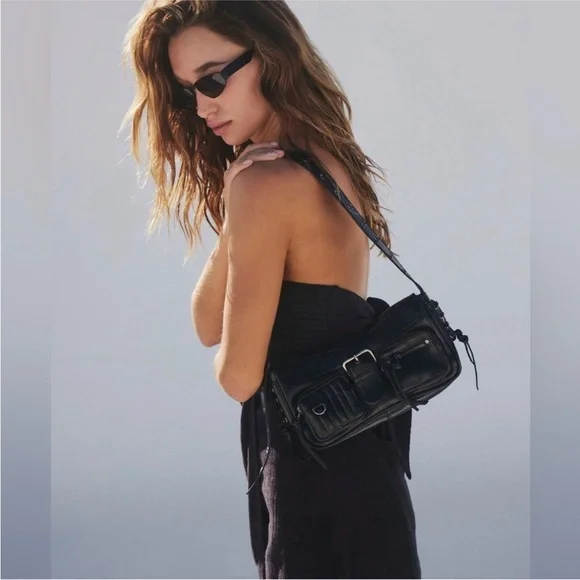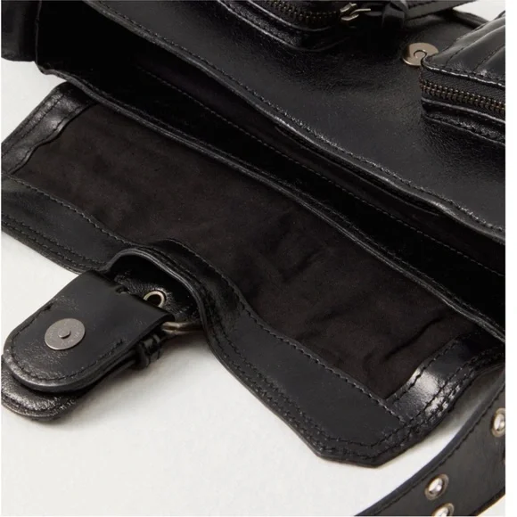 NWT Free People High Speed Crossbody- Elevate your crossbody collection with this too-cool bag featured in a smooth leather fabrication and structured silhouette with bold buckle detail at the front and zippered compartments allover.Features: Smooth leather fabrication, cotton-lined interior, flap style with snap-button closure, three zippered compartments at front, lace-up detail at sides, adjustable shoulder strap with grommet detailWhy We ❤ It: The coolest way to carry all your things, this bold bag adds an unexpected touch to any outfit.Care/ImportImportSize + FitOne SizeShoulder/Strap Drop: 17.72 inDepth: 1.58 inWidth: 9.25 inContentsLeather, CottonTag has been marked to prevent in store returns 4-3-25