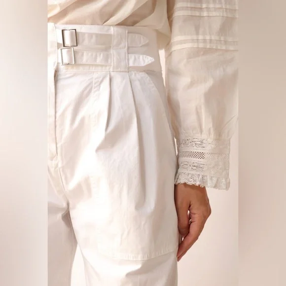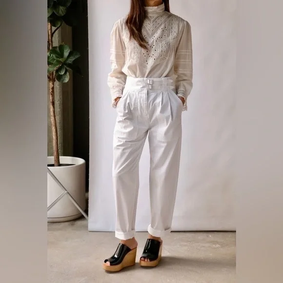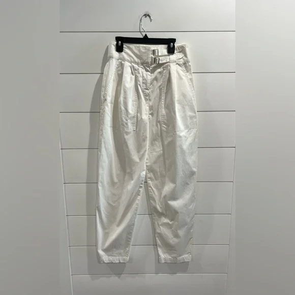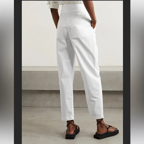 Nili Lotan's 'Dallas' pants are cut from stretch-cotton poplin that's equally lightweight and flexible. They have soft pleats below the belted high-rise waist and relaxed legs that taper at the cuffs. Wear yours with a bodysuit and sandals.Excellent preowned condition Size 028.5” inseam, 13” inseam, 13.5” waist